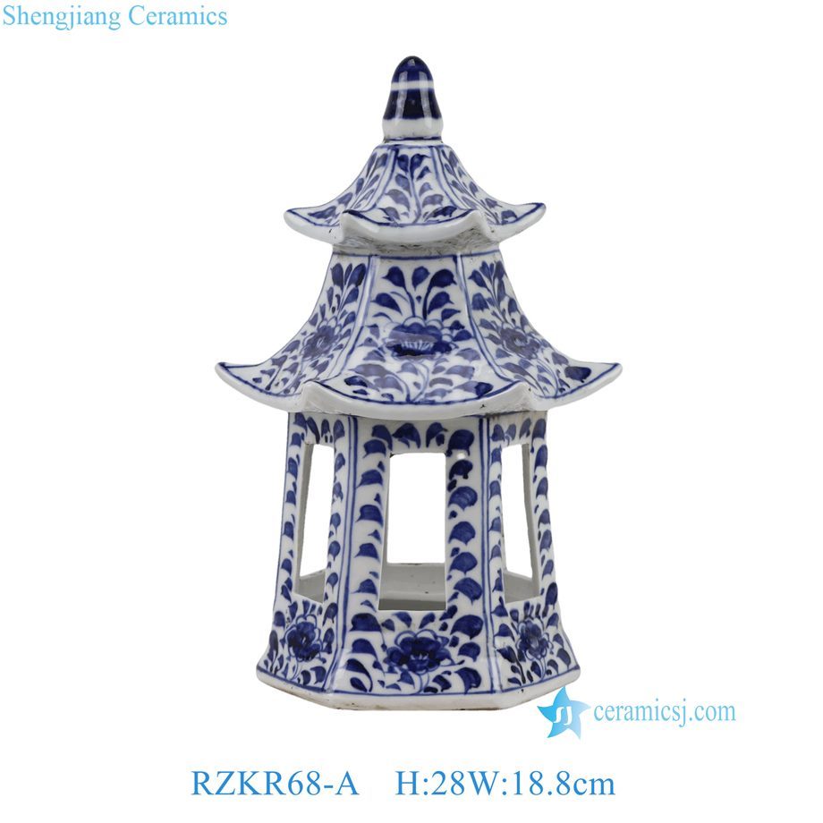 RZKR68-A/B/C Chinoiserie Pink Green Blue Ceramic Pagoda Flower Pattern Cage Statues |