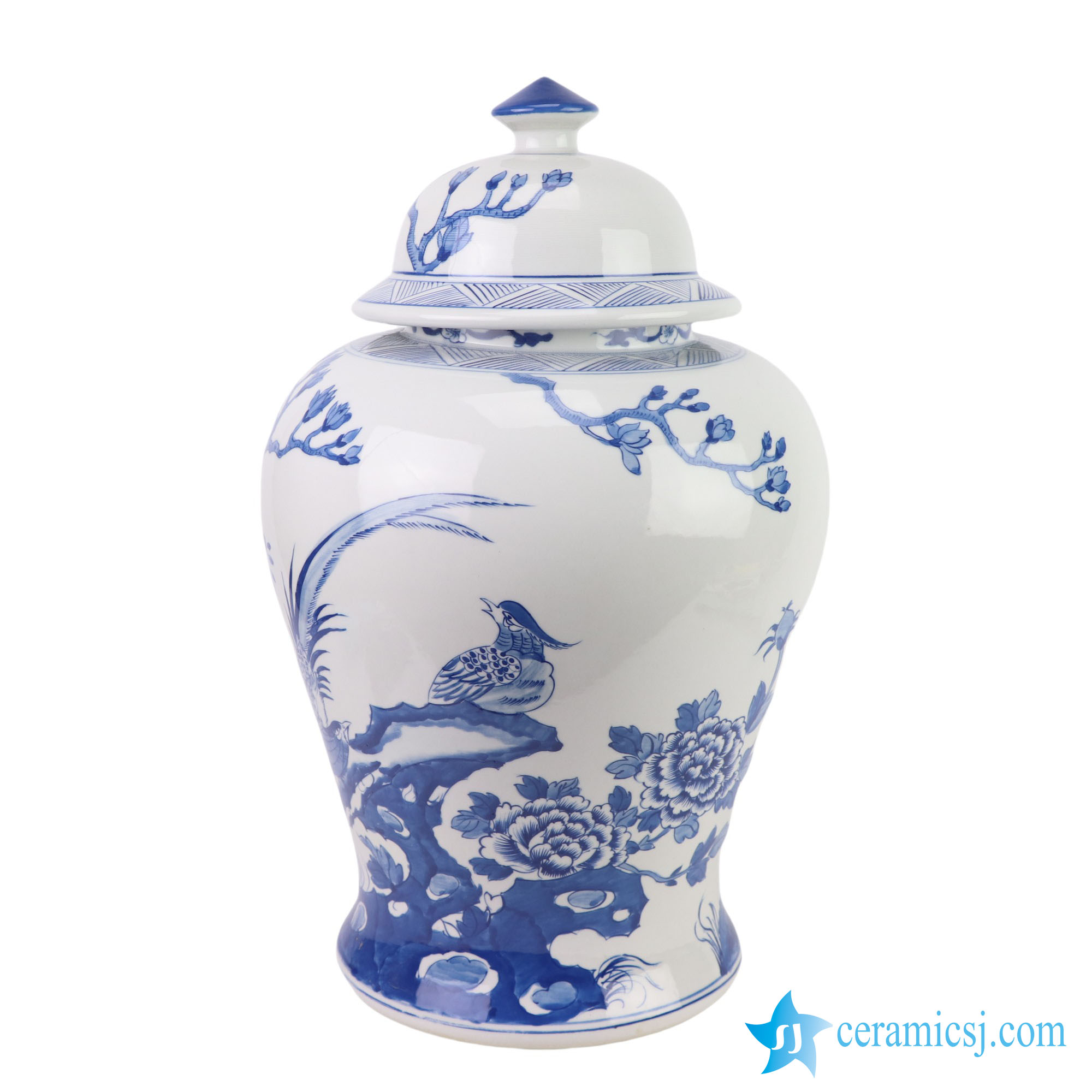 RYKB190-A-B Jingdezhen Wholesale Figure Twisted Branch Motif Ceramic Temple Jar Vase for Home Decoration Hotel Living Room