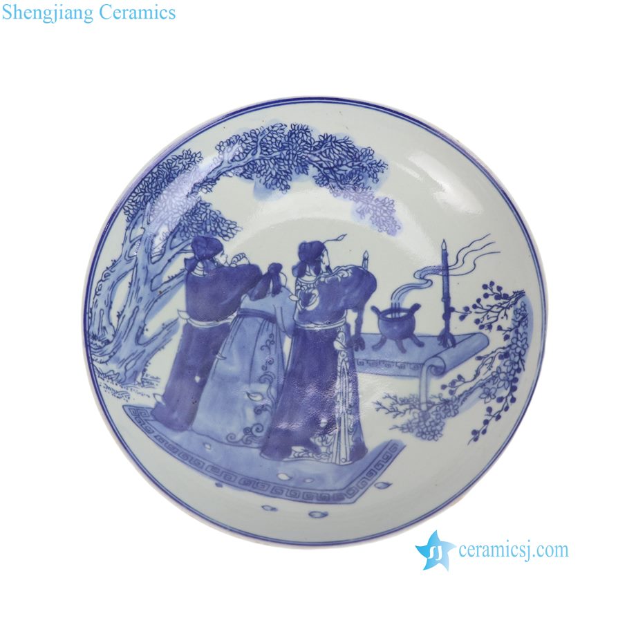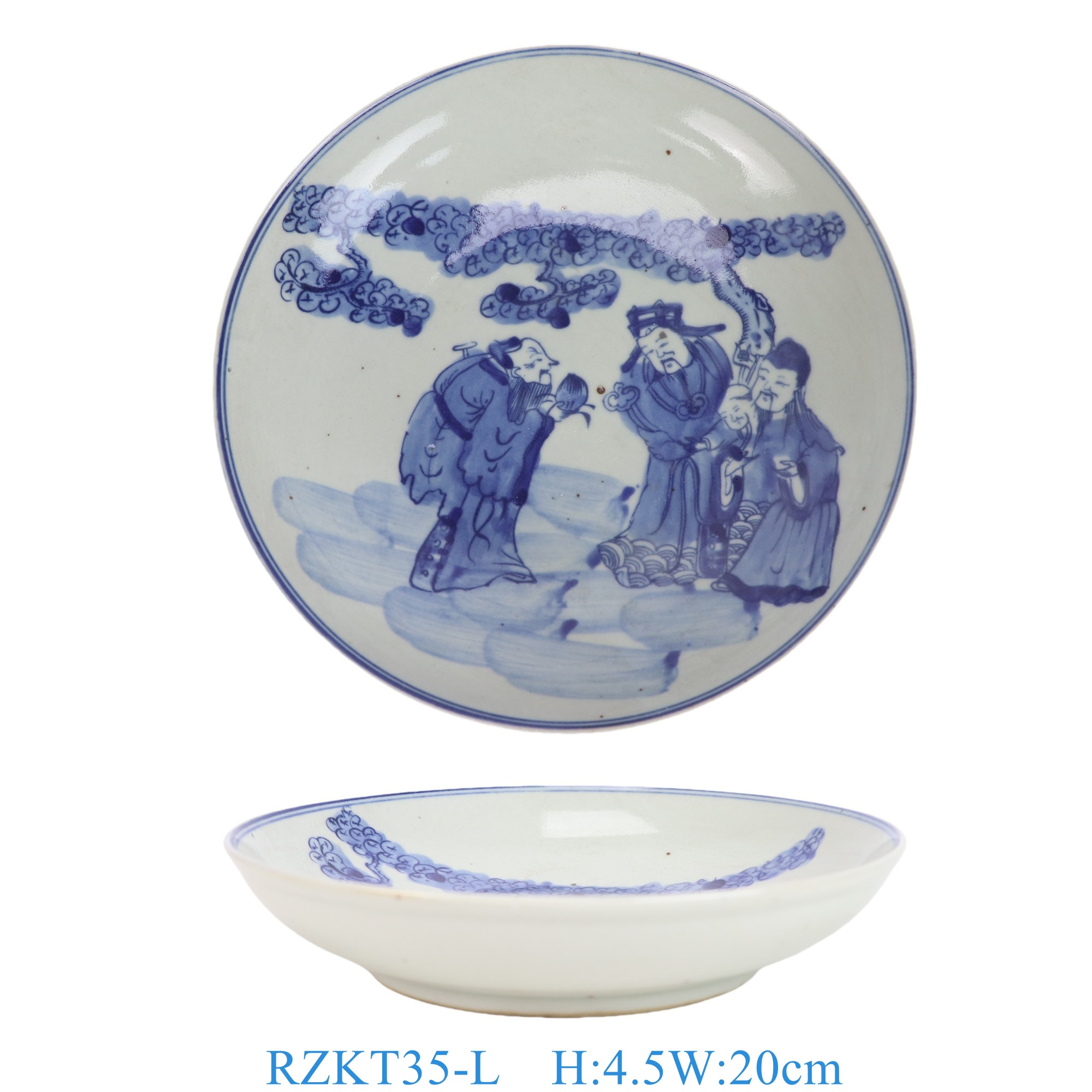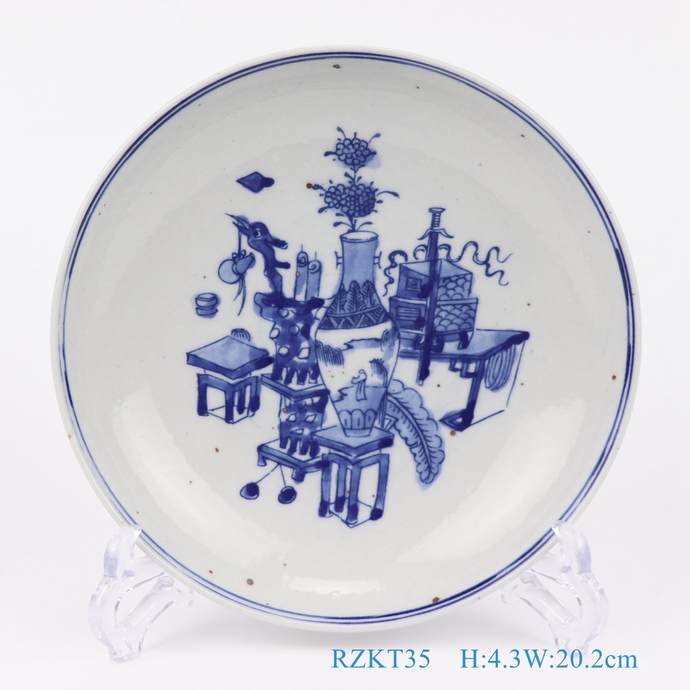 RZKT35 Qing Dynasty Blue and White Porcelain Dinner Plate Chinese Collection Figurines Decorative Ceramic Plate |
