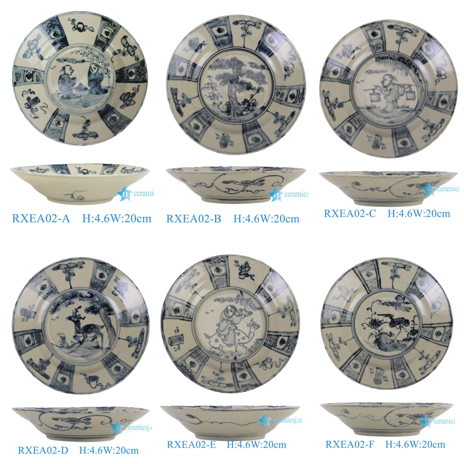 RXEA02-A-B-C-D-E-F Jingdezhen Antique Chinoiserie Hand Painted Decorative Plate for Home Decor Wall