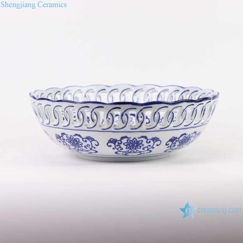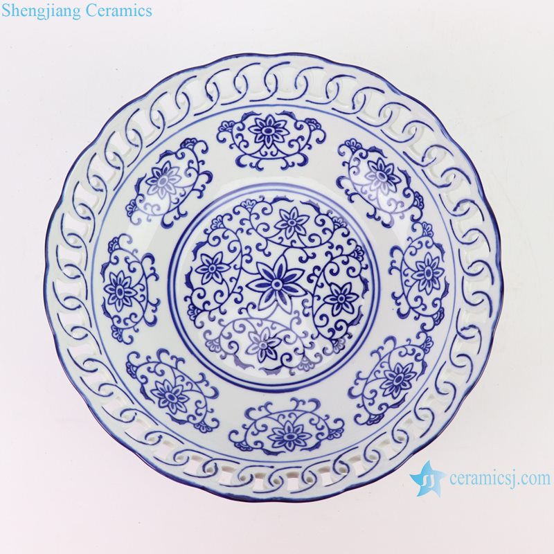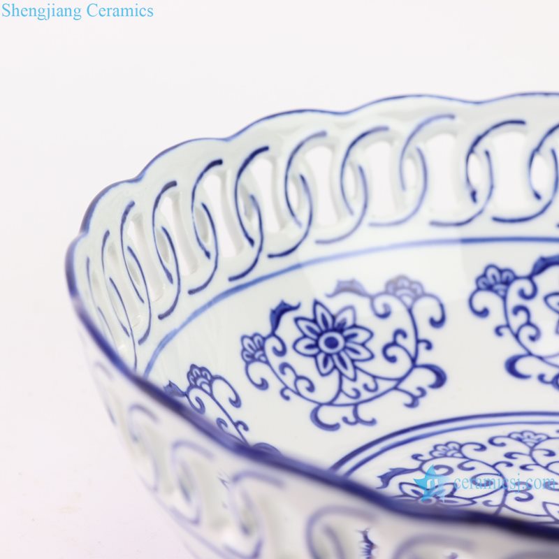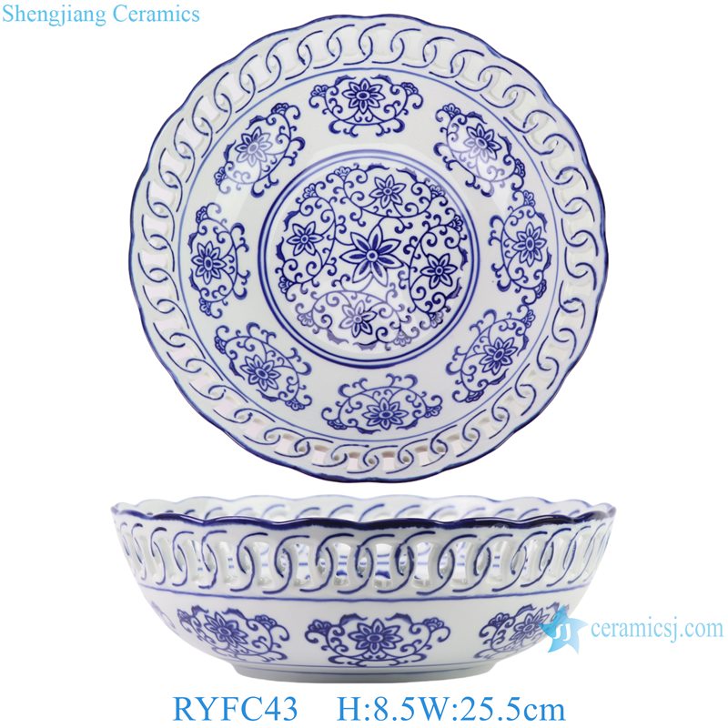 RYFC43 Blue and White Openwork Twisted Branch Design Big Porcelain Fruit Bowl