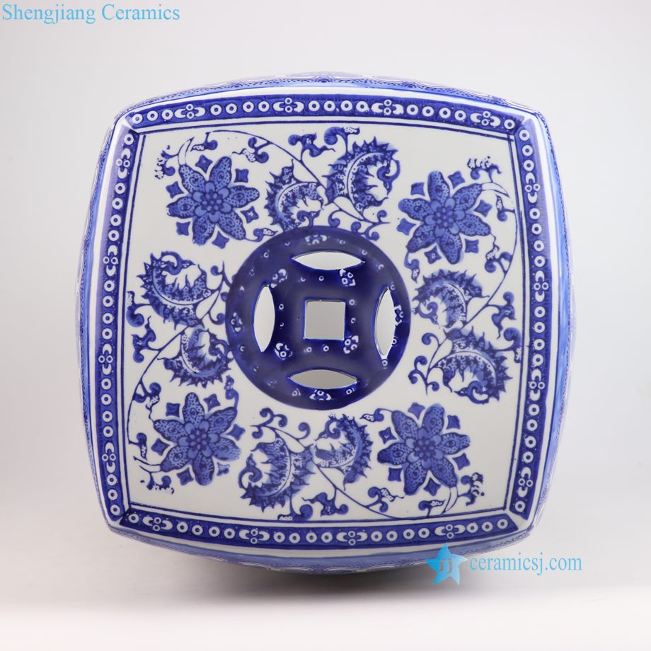 RZPZ21 Series Hand-Painted Porcelain Garden Stool Chinoiserie Square Ceramic Seat Floral Outdoor Accent |