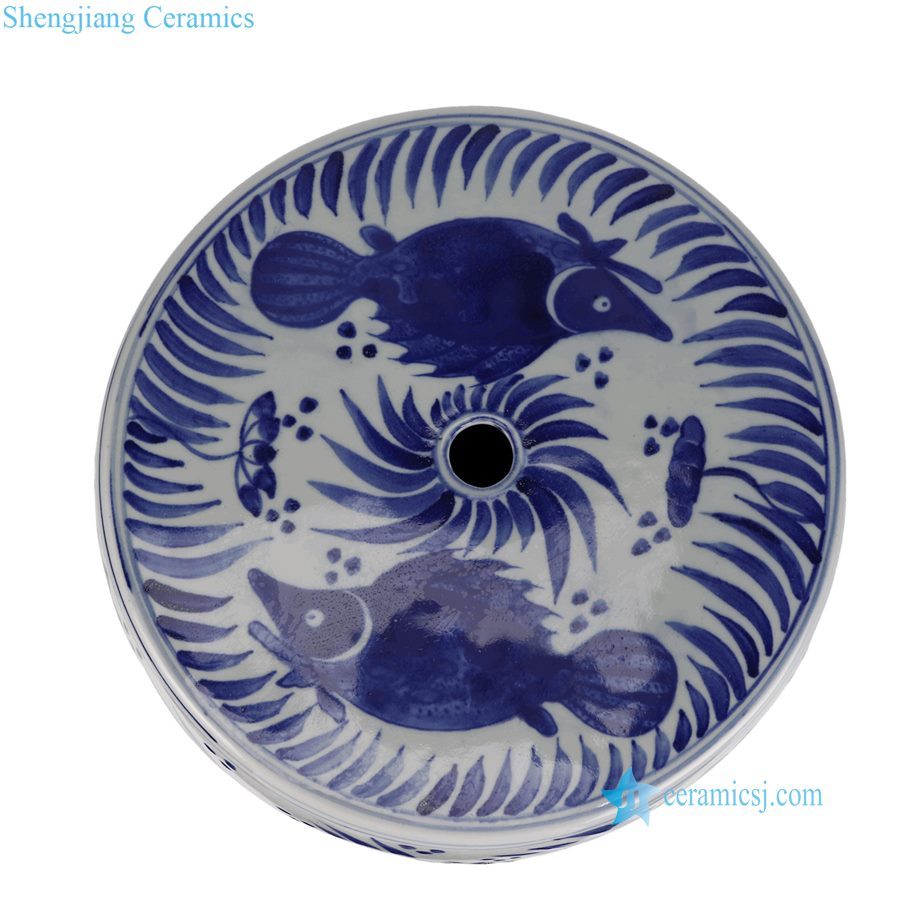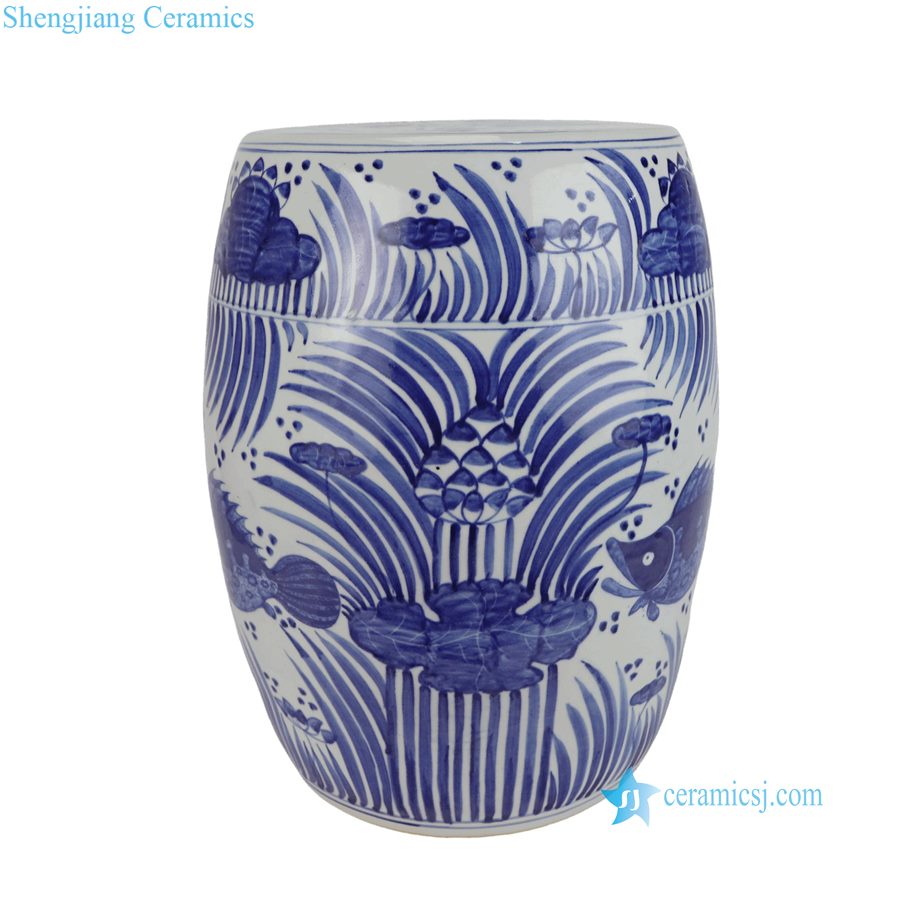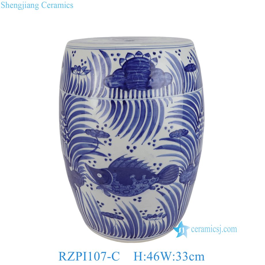 RZPI107-C Chinese Porcelain Fish Algae Pattern Ceramic Garden Drum Stool Seat for Home Outdoor Decor