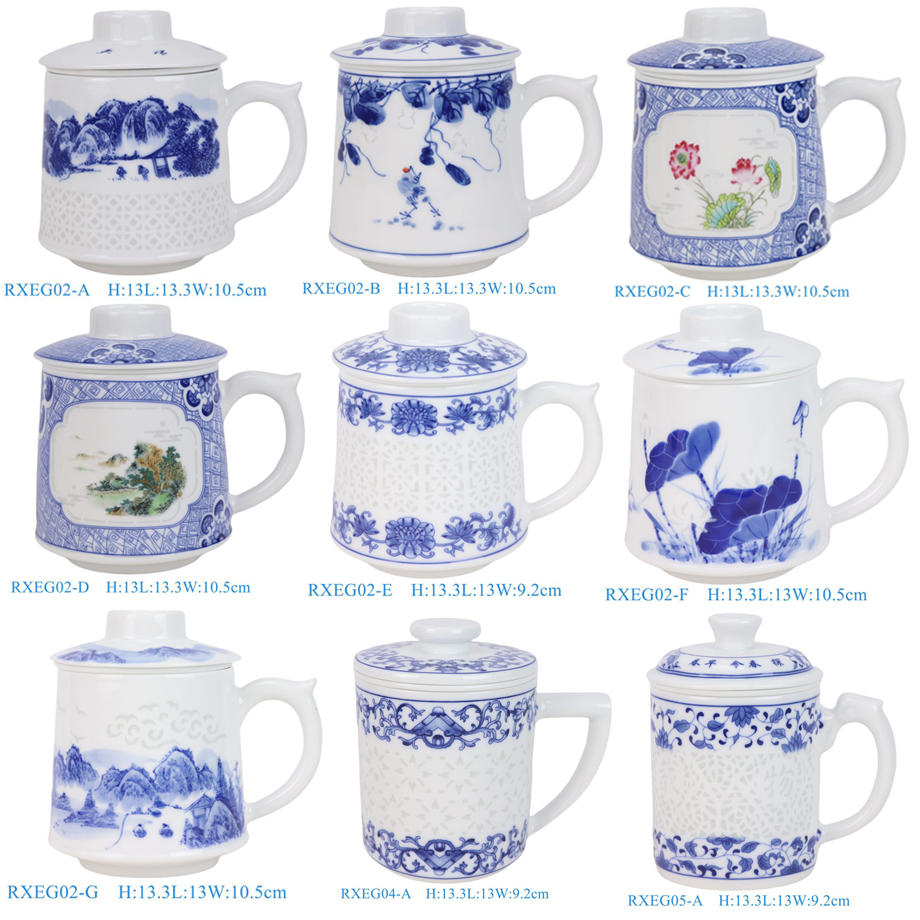 RXEG02-A-B-C-D-E-F-G-04-05-A Jingdezhen Rice Grain Porcelain Tea Cup with Strainer