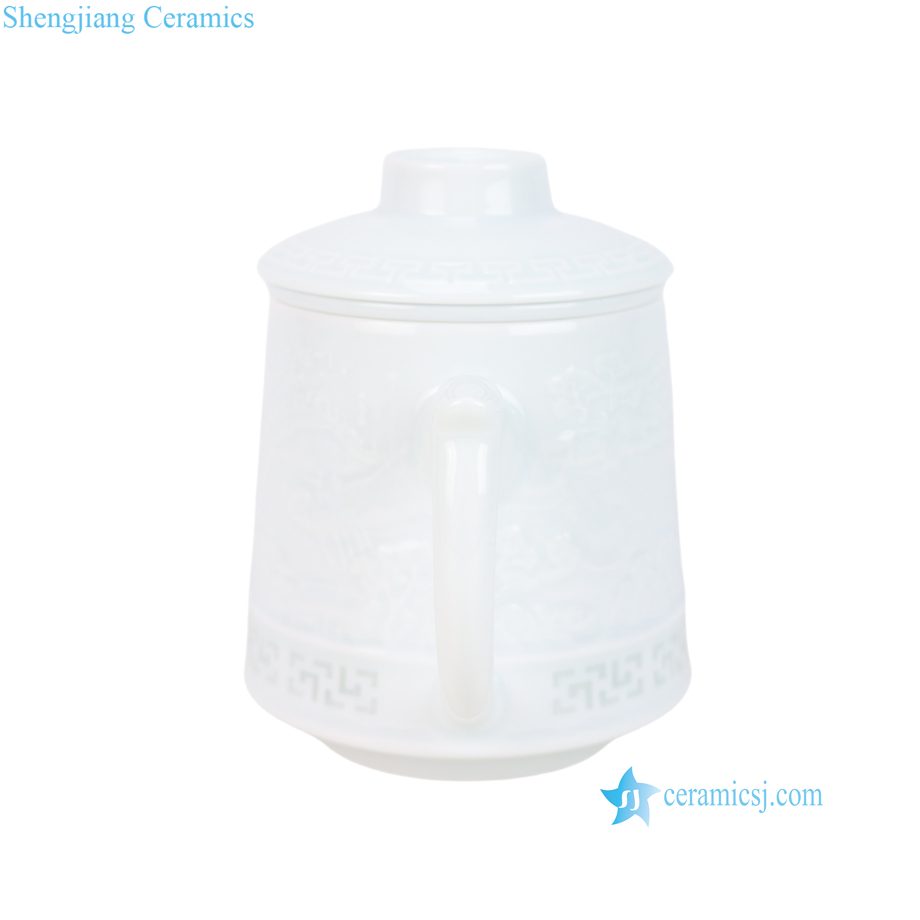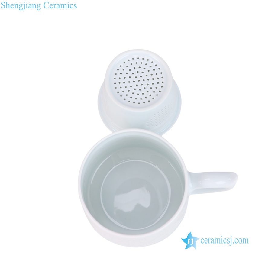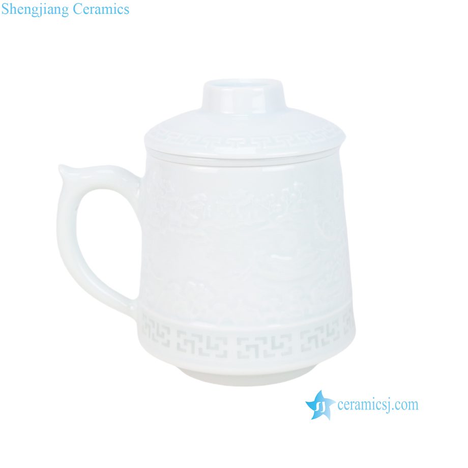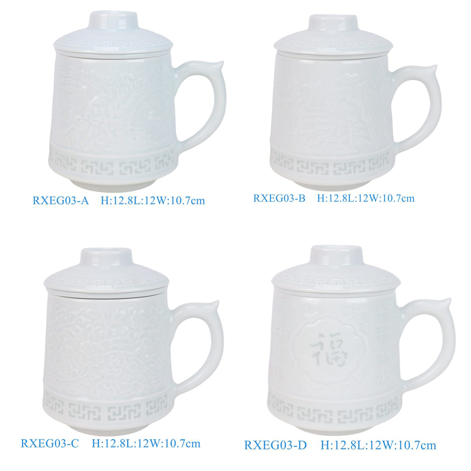 RXEG03-A-B-C-D Jingdezhen 550ML Rice Grain Engraving Pattern Porcelain Tea Cup with Strainer