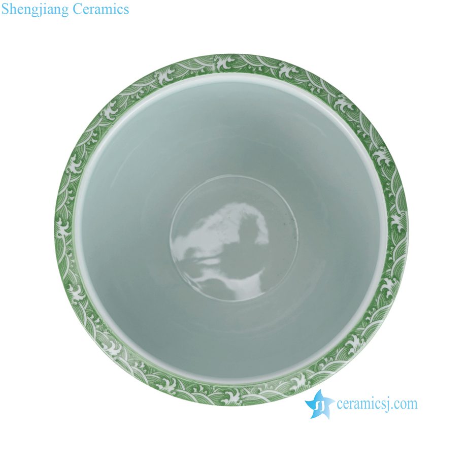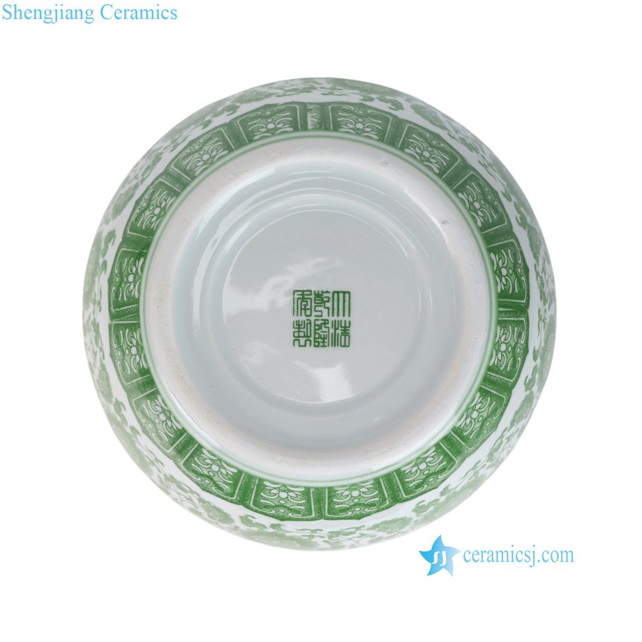 RZNV17-D Green Entwined Lotus Motif Round Ceramic Planter Jade Porcelain Flower Pots