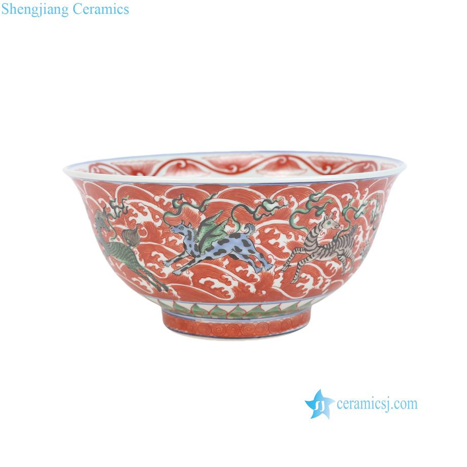 RXEC02-A 7 Inch Chinese Porcelain Bowl Hand Painted Sea Beast Wave Motif Wucai Wares