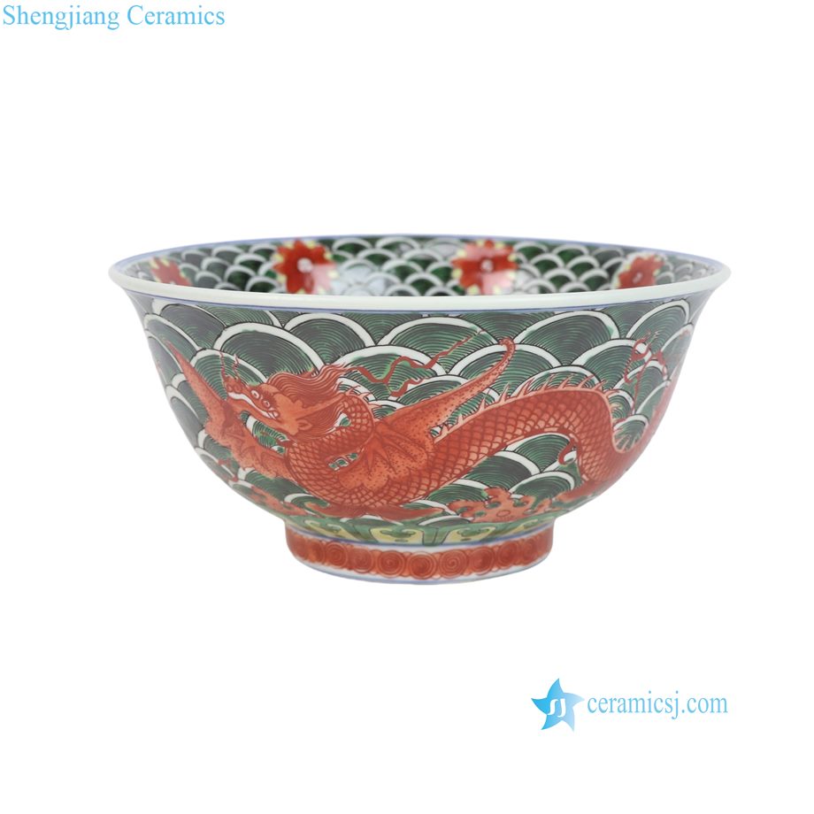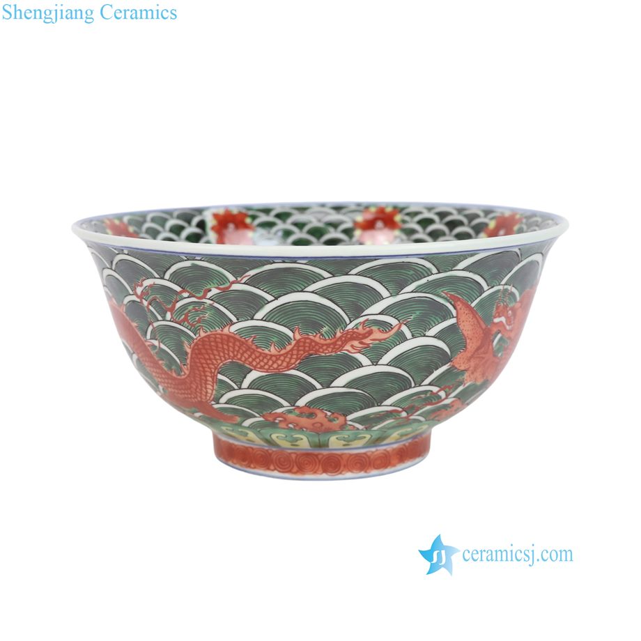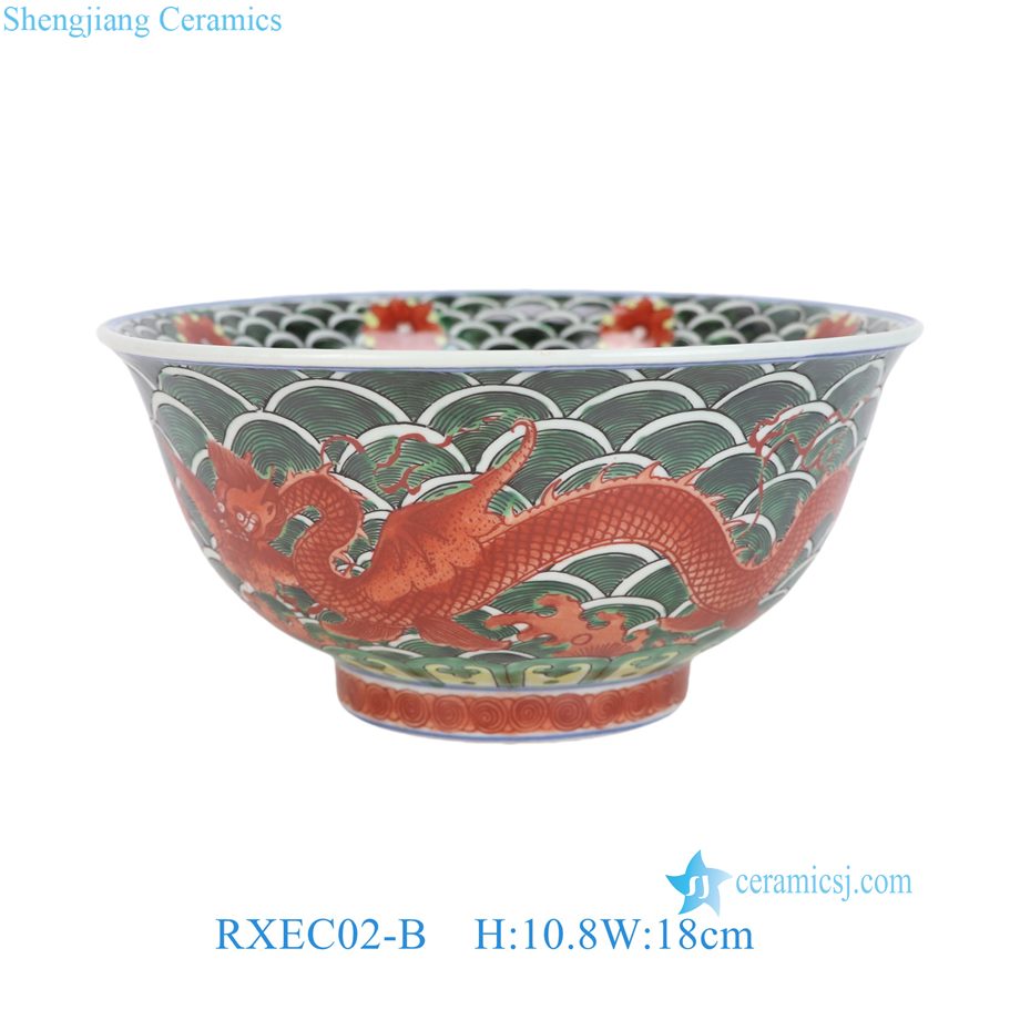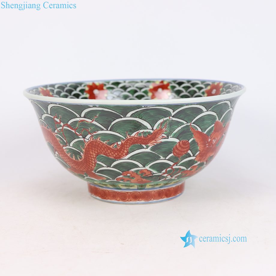 RXEC02-B Chinese Green Ground Porcelain Planter Antique Dragon Motif Decorative Ceramic Bowl