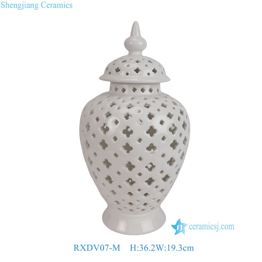 RXDV07 Elegant White Hollow Ceramic Ginger Jar Modern Decorative Lidded Temple Jar for Home Decor
