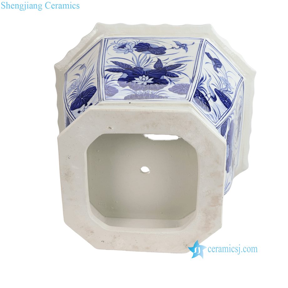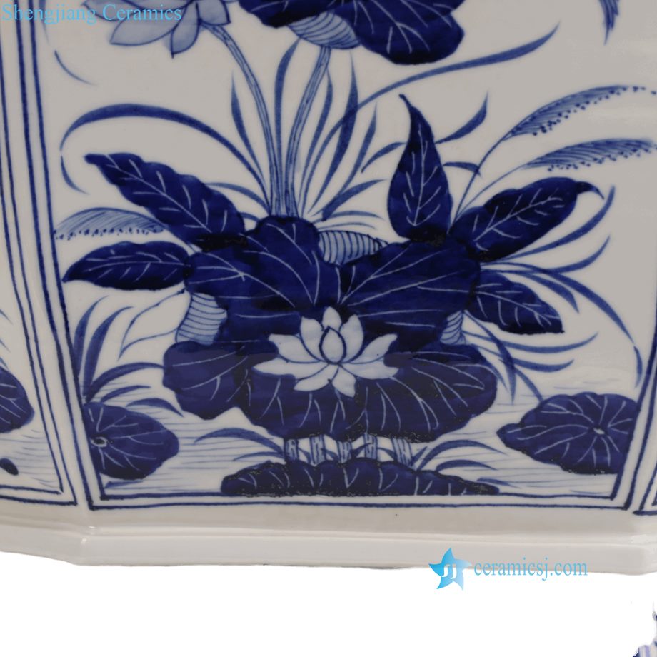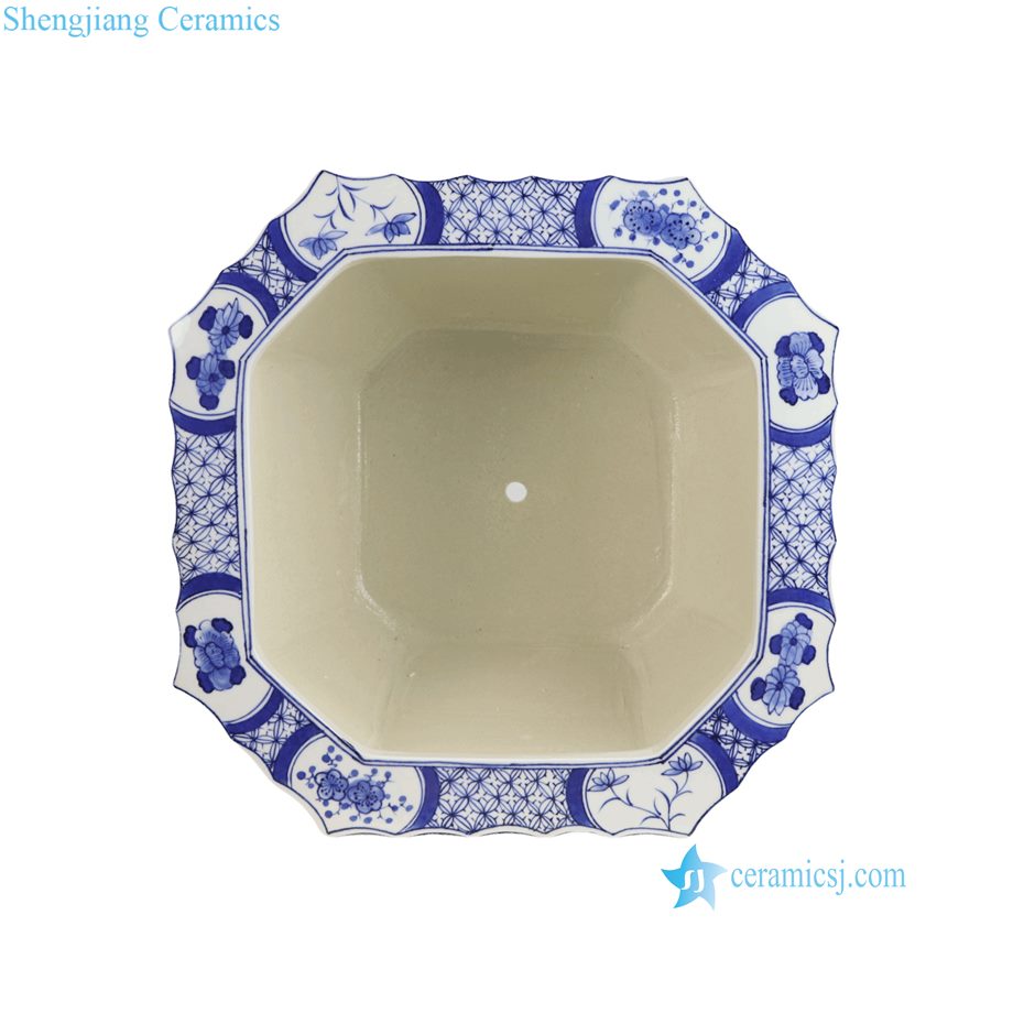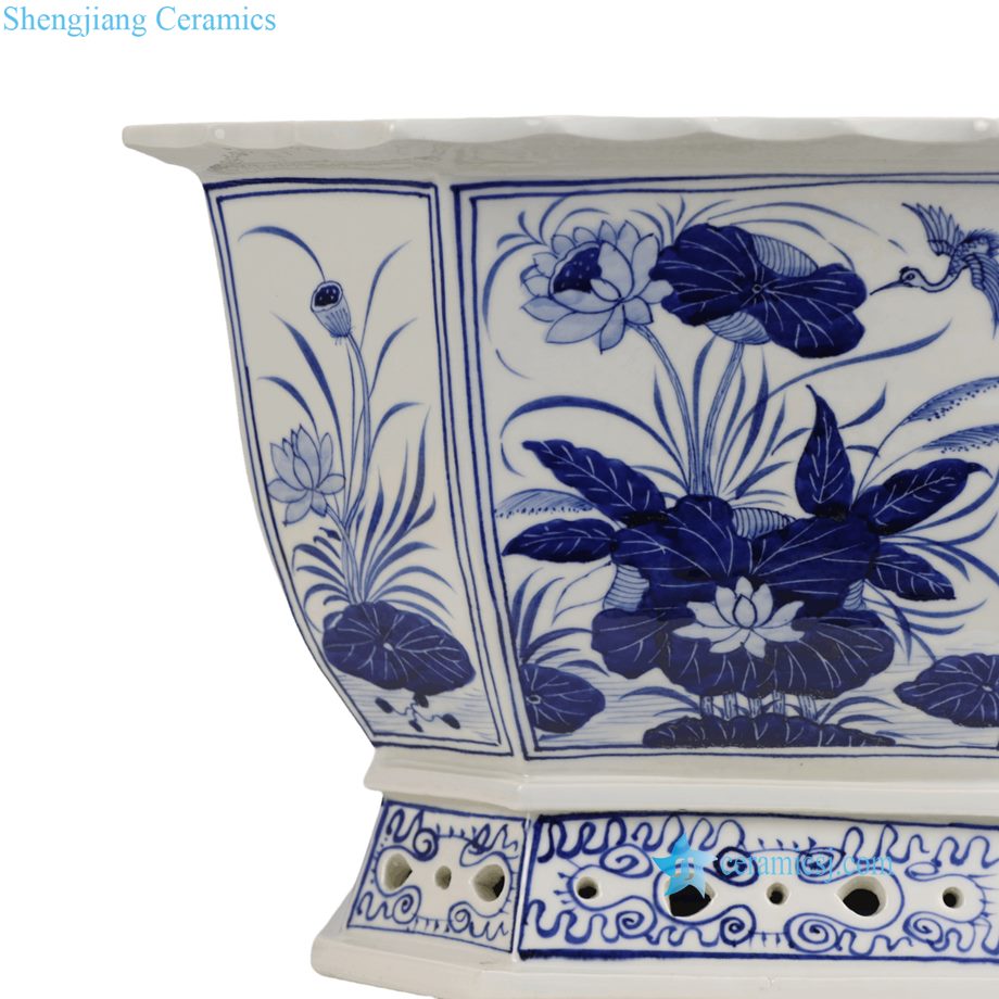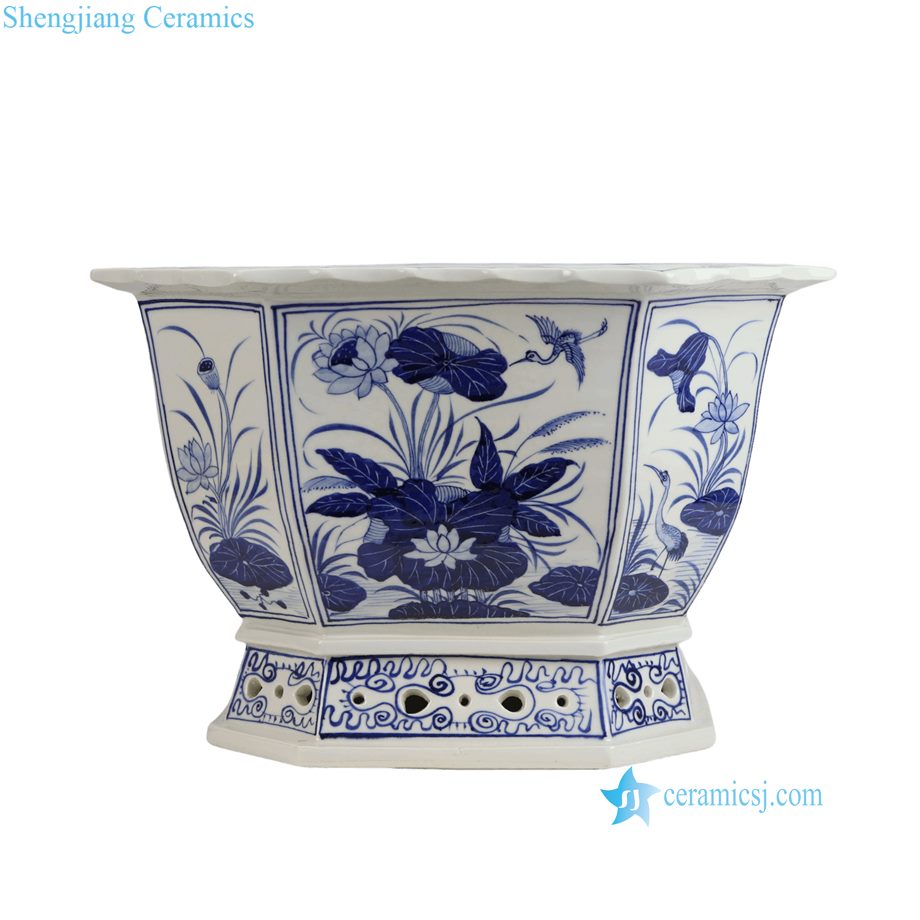 RZKS13-D Blue White Hand Painted Windowed Lotus Pattern Porcelain Octagonal Flower Pots