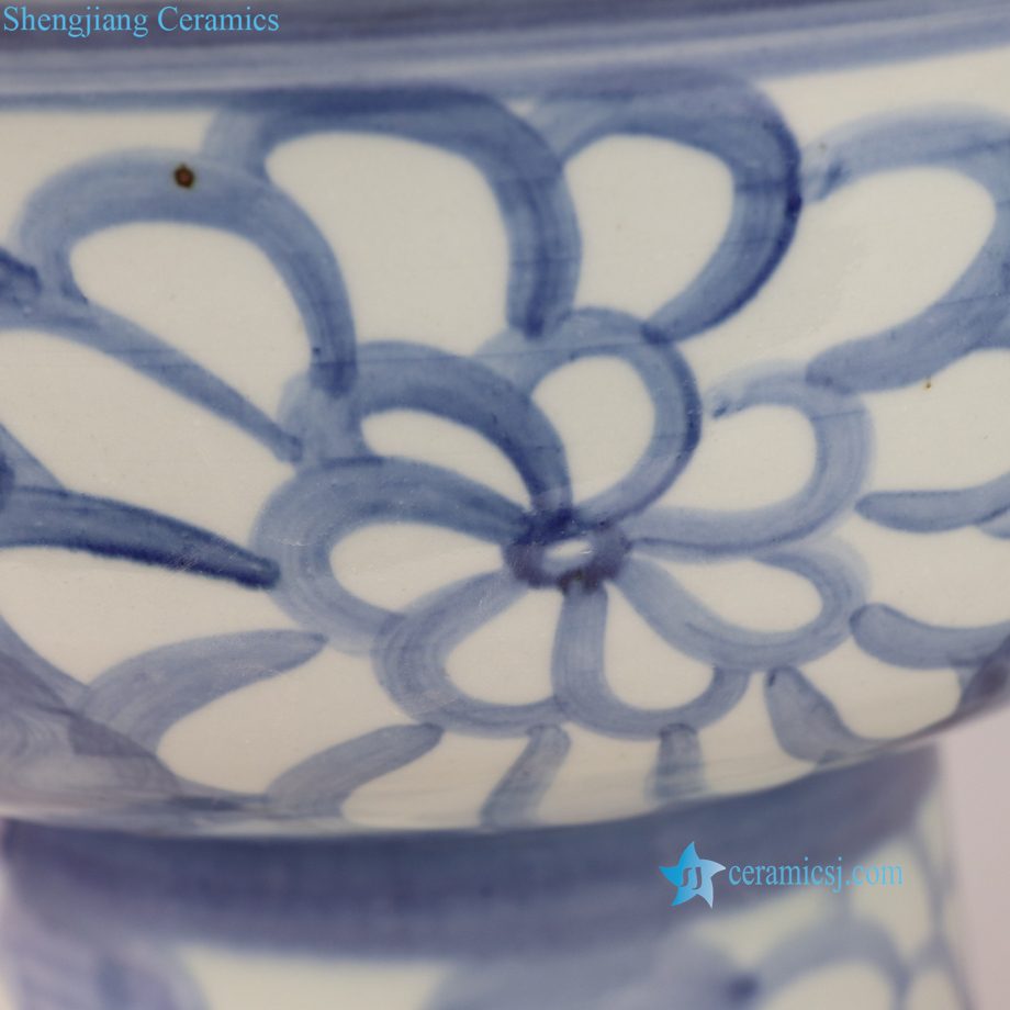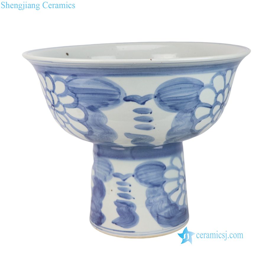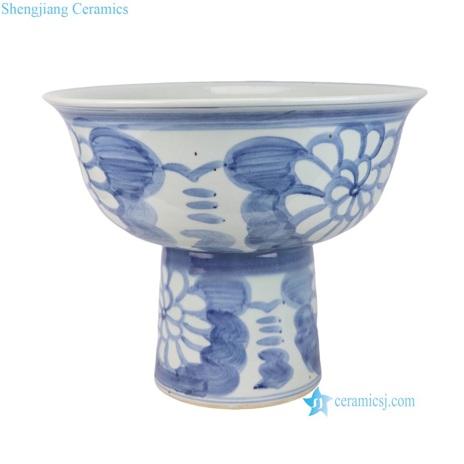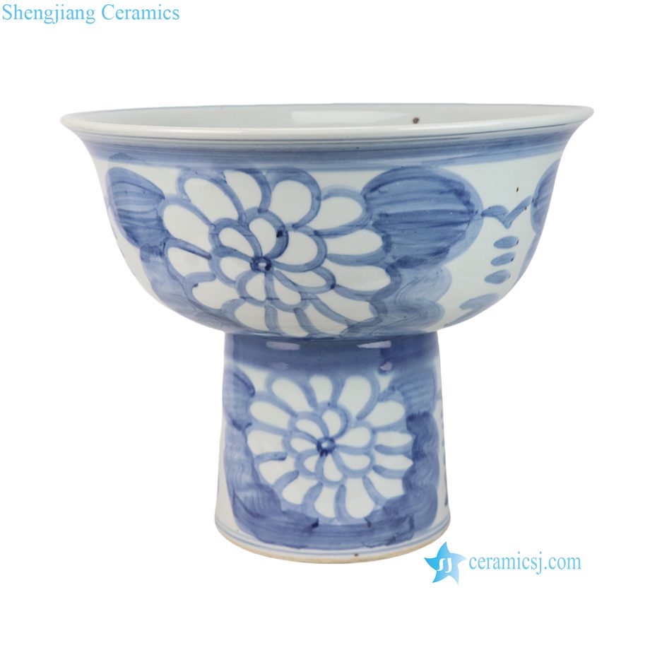 RZPI120-A Blue White Folk Hand Painted Sunflower Pattern High Foot Porcelain Flower Pots