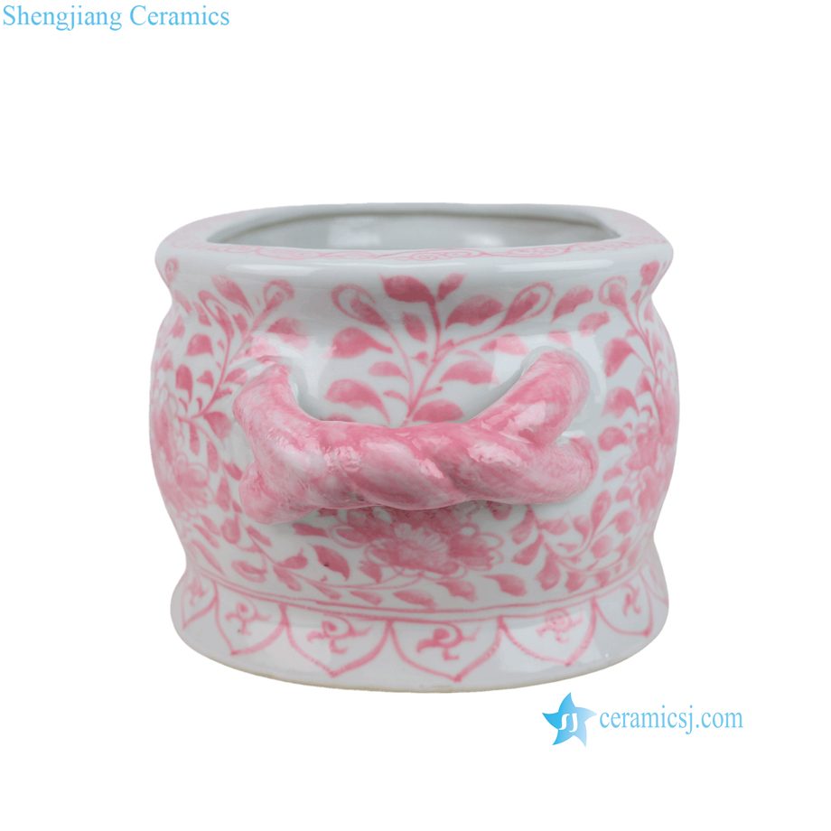 RZKR22-C-D Jingdezhen High Quality New Hand Painted Green and Pink Oval Plant Pots with Handle