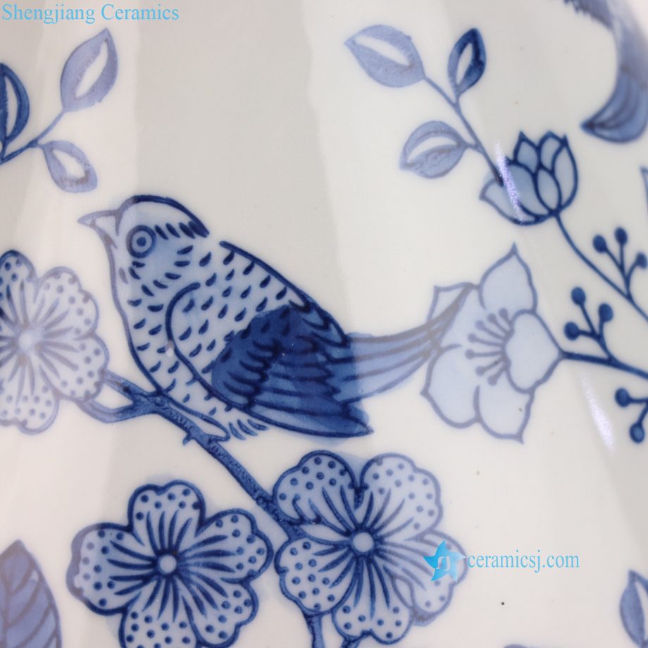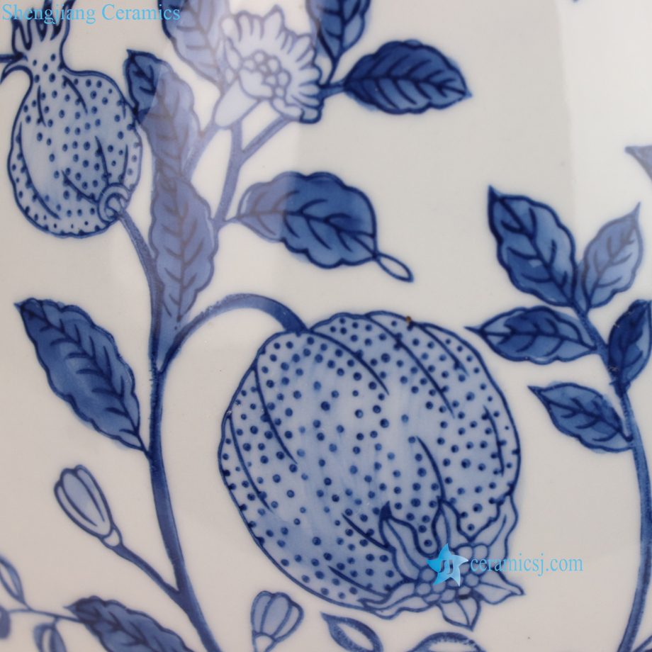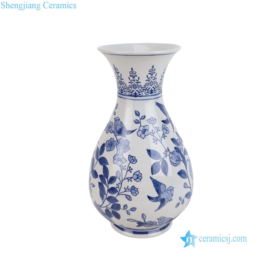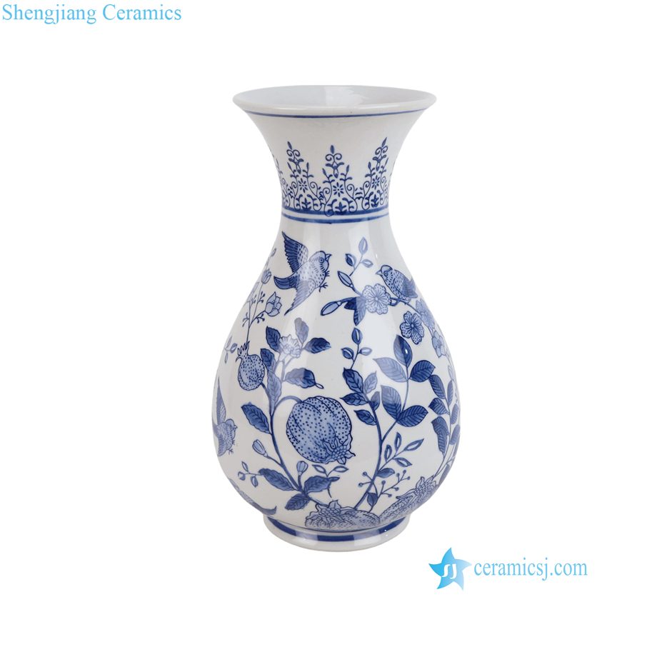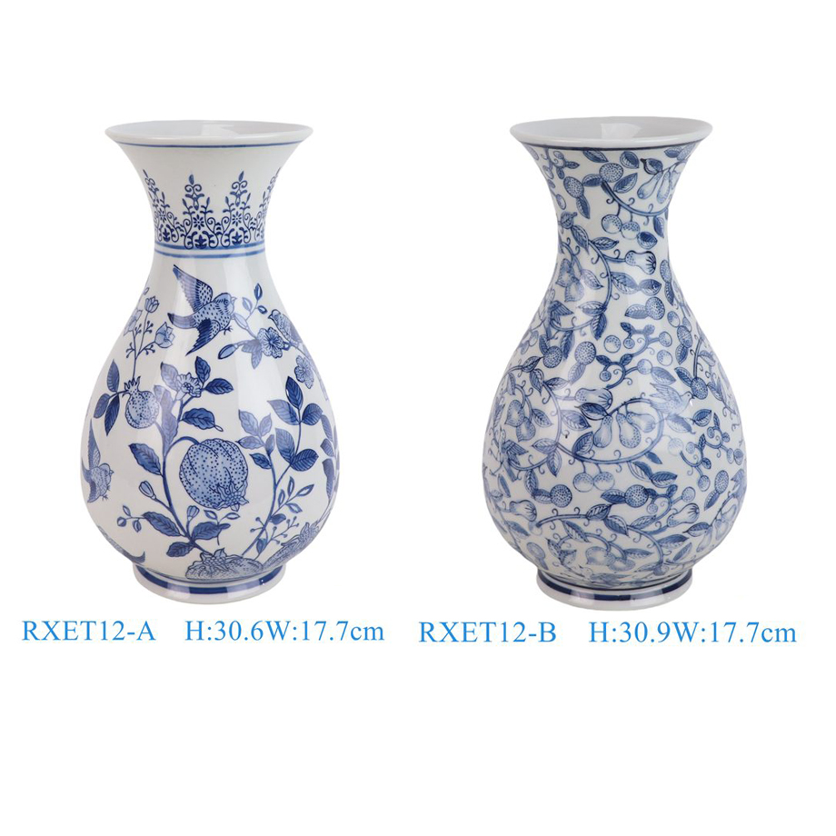 RXET12-A-B New Blue and White Flower Bird Pomegranate Pattern Big Mouth Vase Yuhuchun for Home Decoration Living Room Wedding