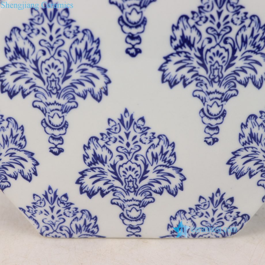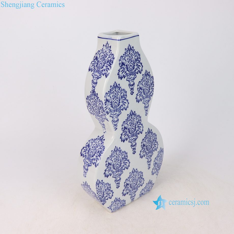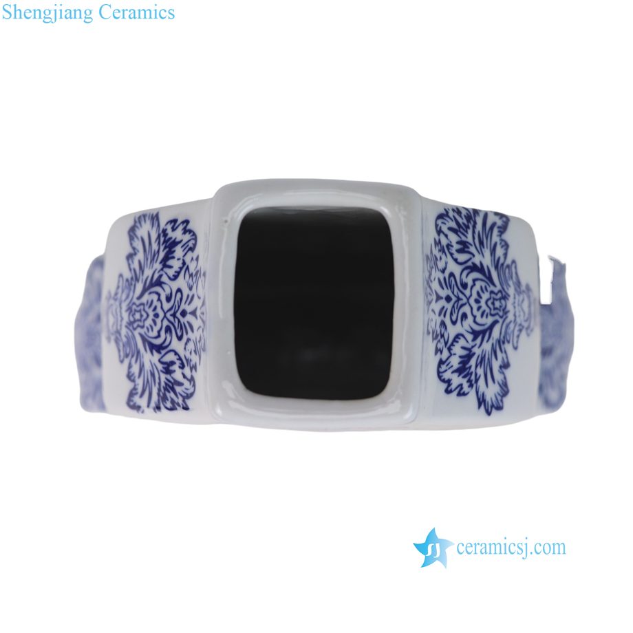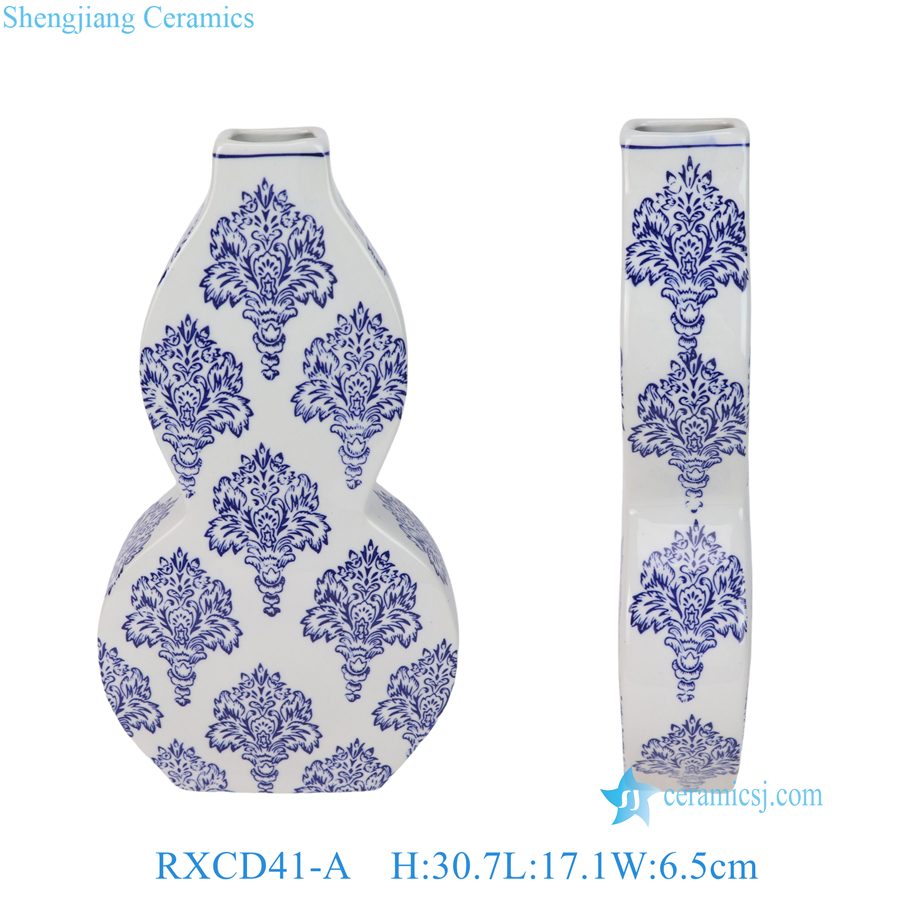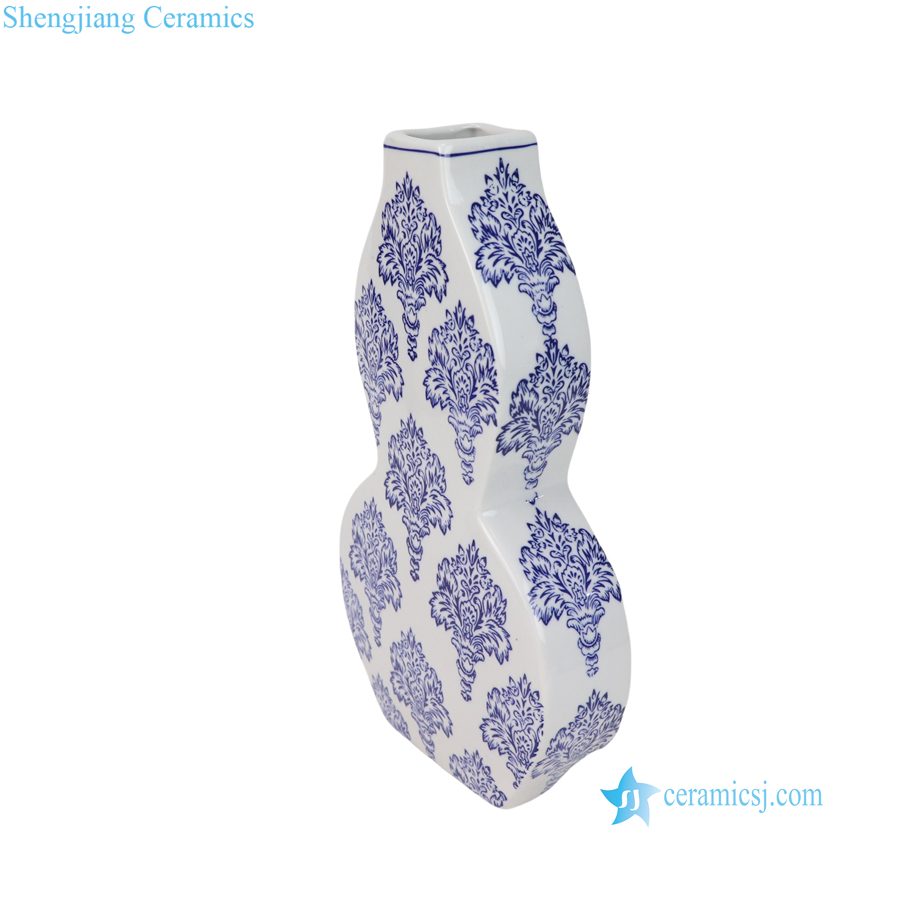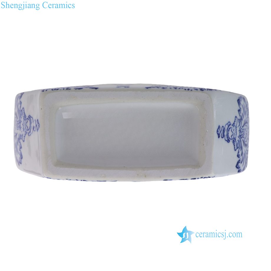 RXCD41-A Modern Chinoiserie Decal Blue and White Flower Motif Square Decorative Flat Vase for Home Decor Living Room Hotel
