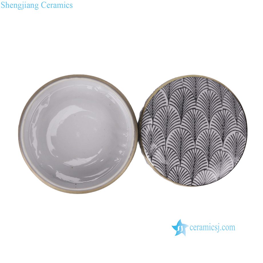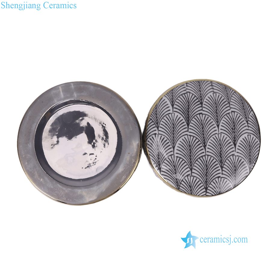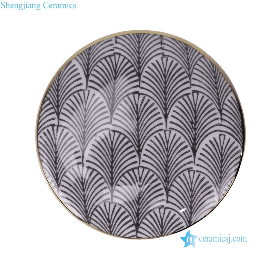 RXCD04-B-S Small Size Black Ginkgo Leaf Pattern Gold-plated Ceramic Flat Box for Baubles