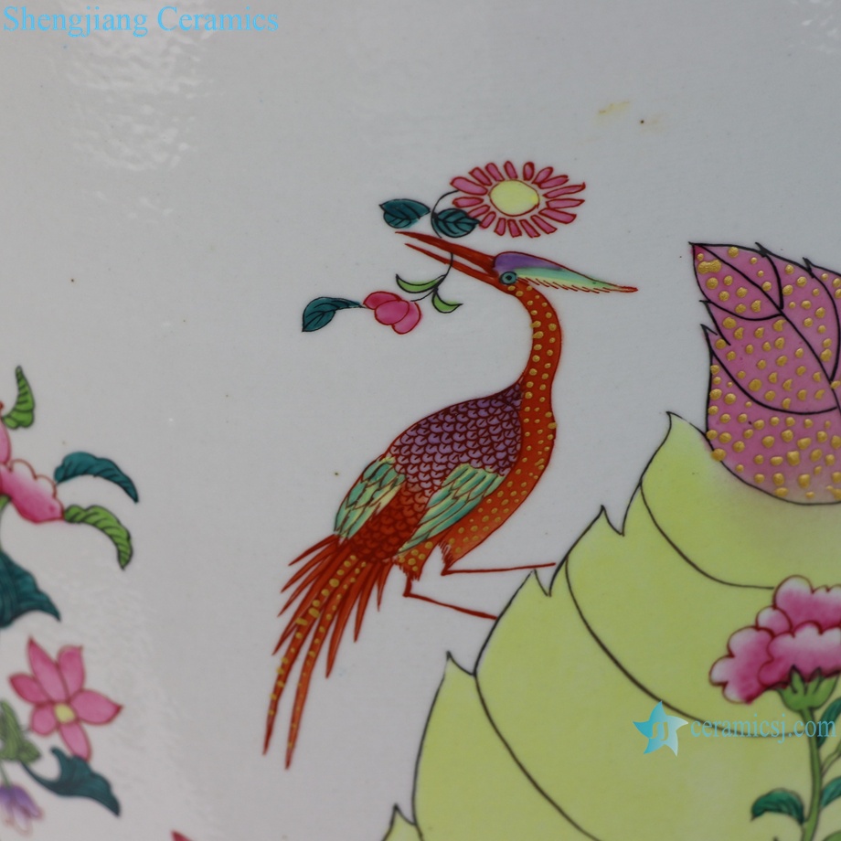 Vintage Export Jingdezhen Porcelain Hand Painted Phoenix Tobacco Leaf Ginger Jar