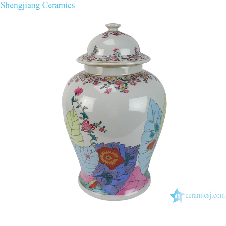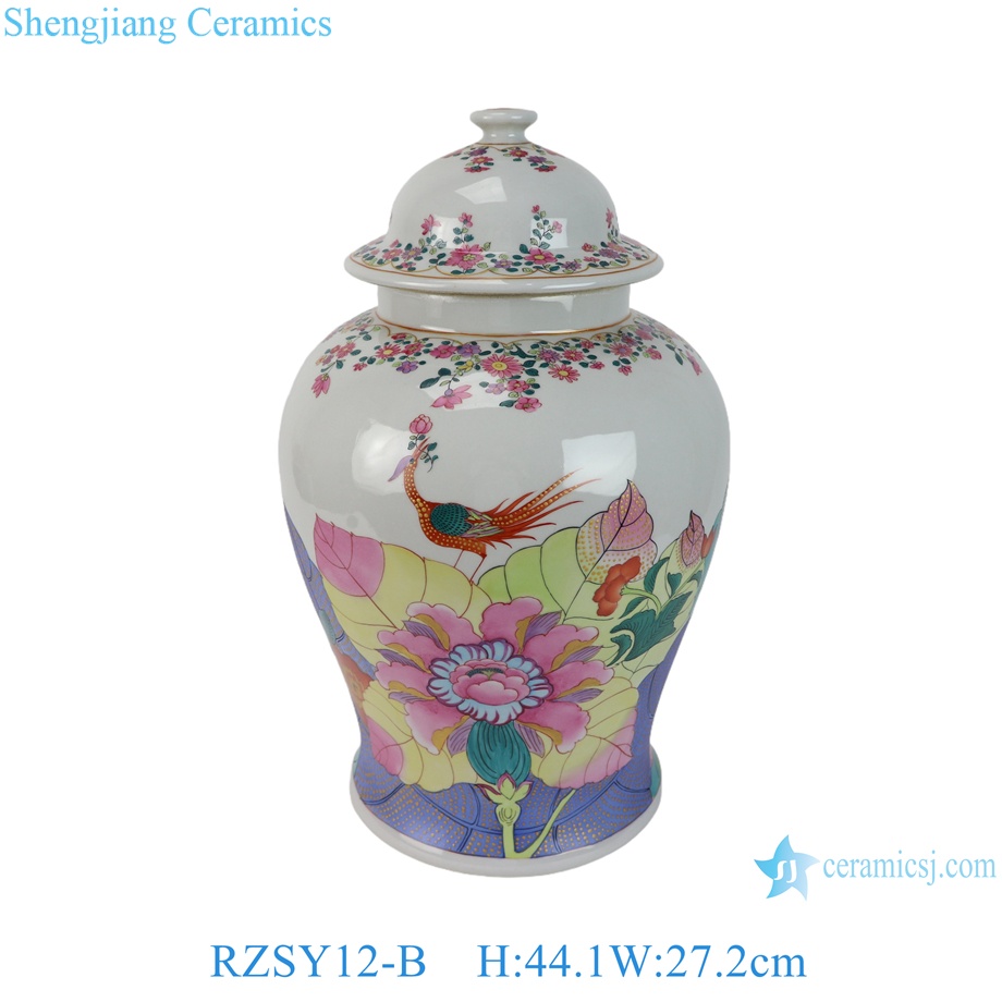 RZSY12-B Vintage Export Jingdezhen Porcelain Hand Painted Phoenix Tobacco Leaf Temple Jar