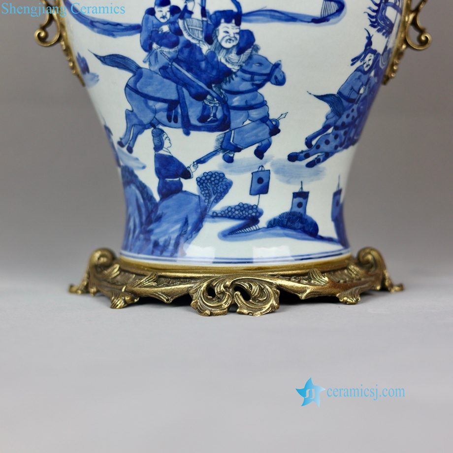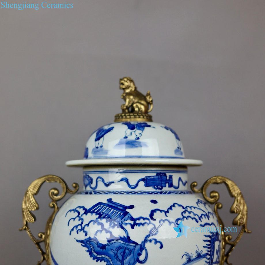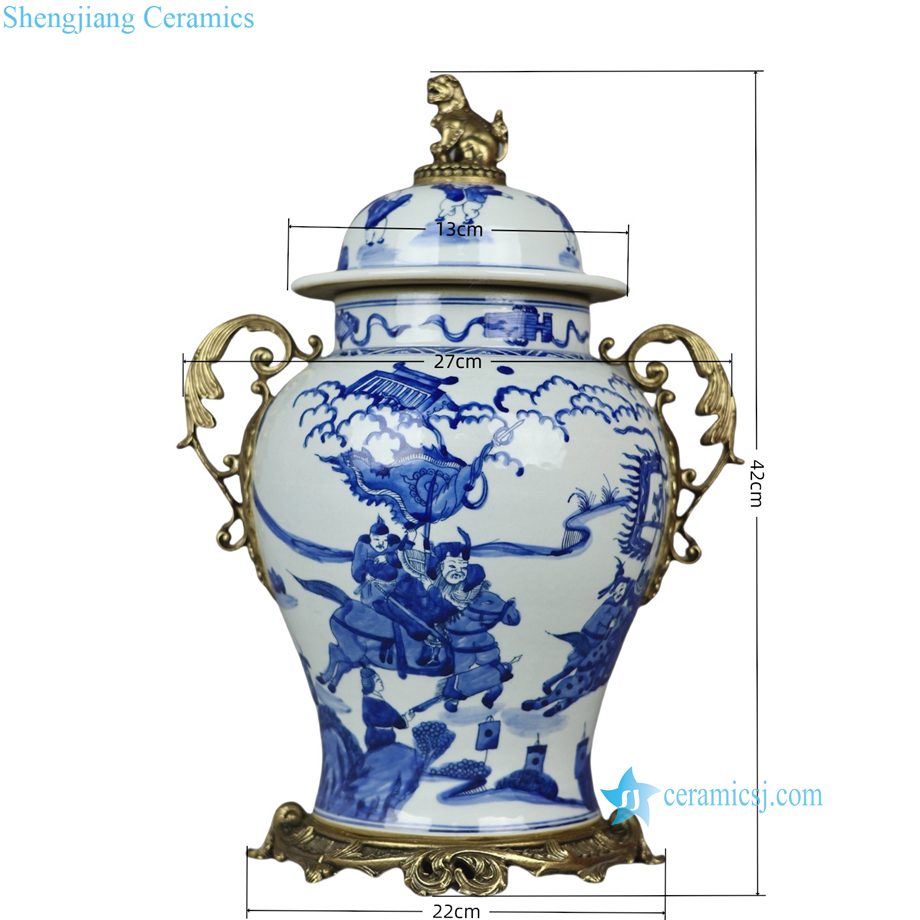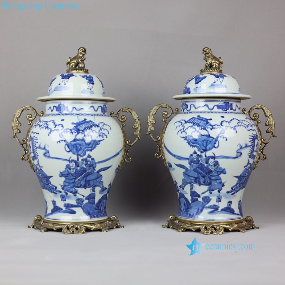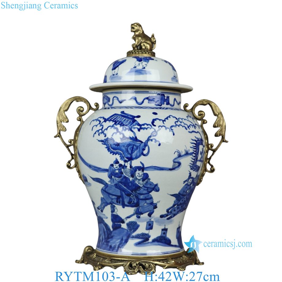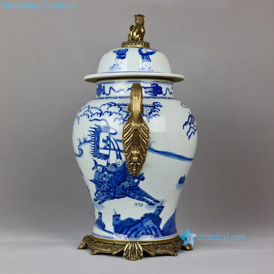Qing Kangxi Blue White Inlaid Copper Figure Pattern General Jar for Villa Home Decor