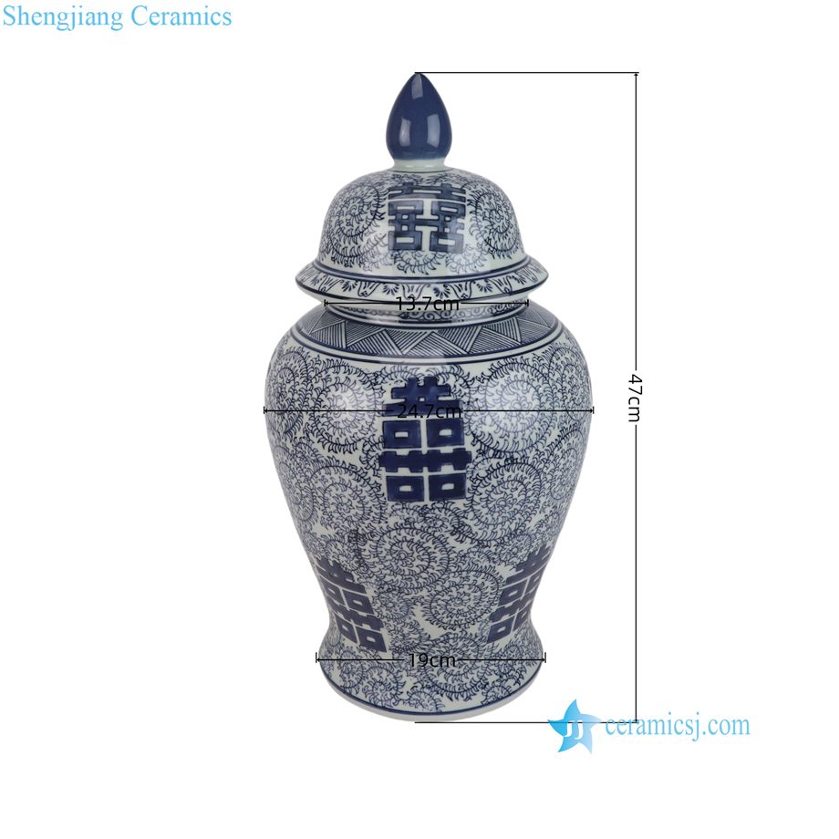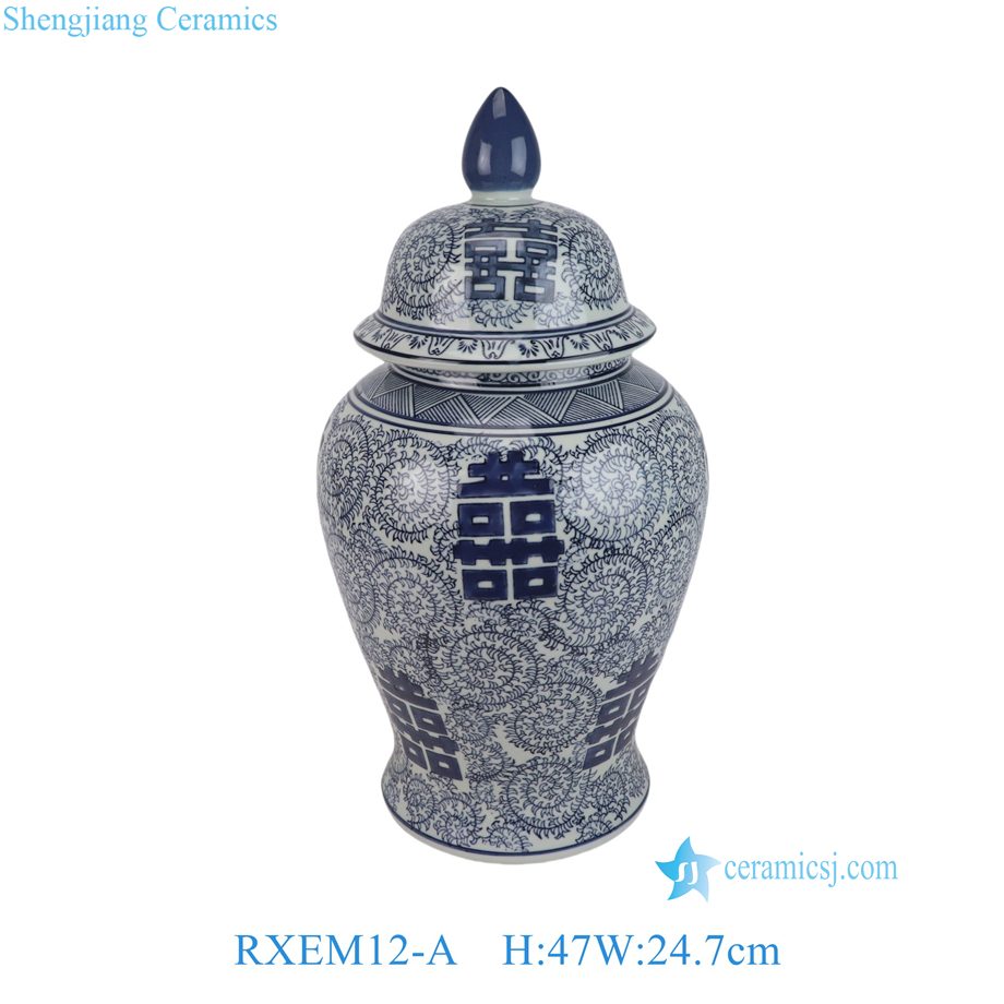 RXEM05-D/RXEM05-E/RXEM12-A/ RXEM13-A Blue and White Floral pattern Happiness letter Red Color Ceramic Jar Pot
