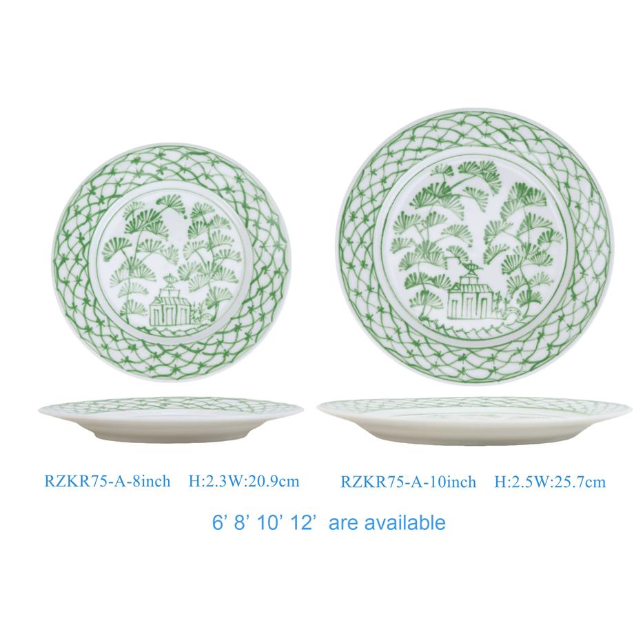 RZKR75-A-8inch-10inch High Quality Hand Painted Green and White Ceramic Dinnerware Sets Serving Plate