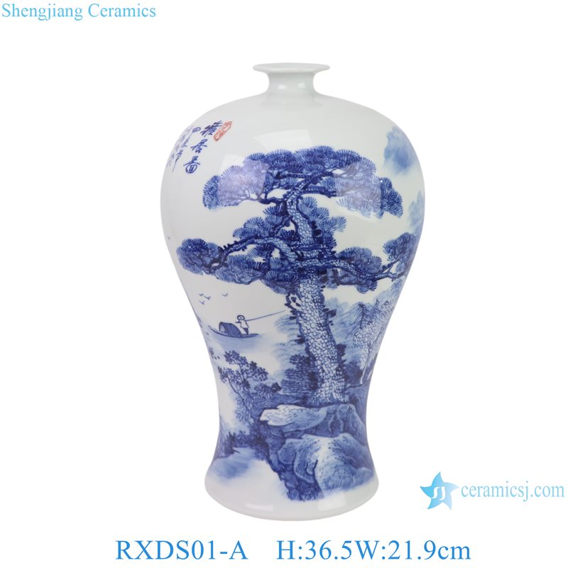 RXDS01-A Jingdezhen Hand Pained Landscape Motif Meiping Porcelain Vase for Home Decor Collections