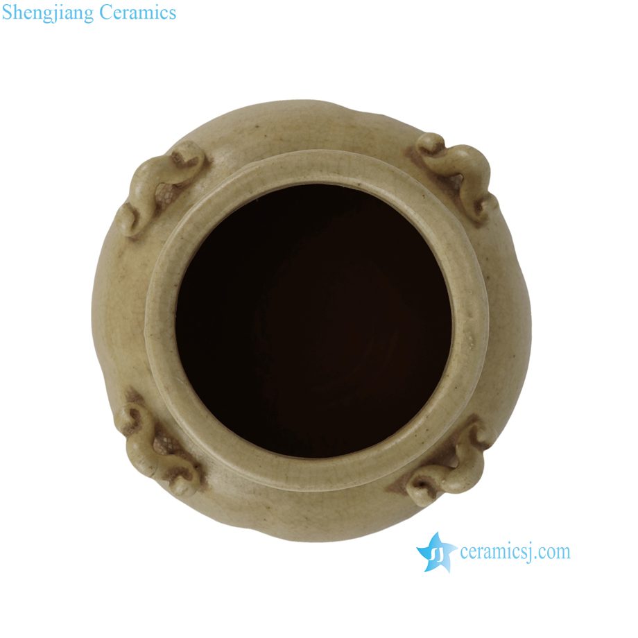 RXEN03-A Antique the Song Dynasty Grayish Celadon Glaze Four-Loop-Handle Pot Vase