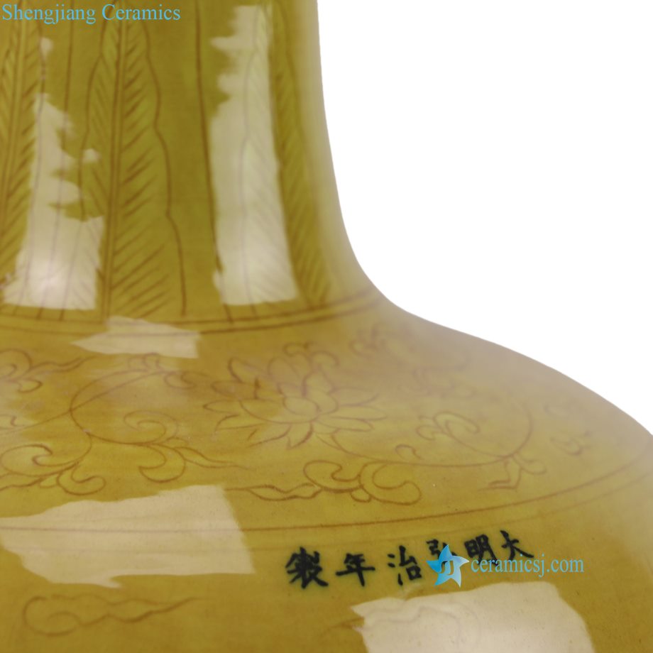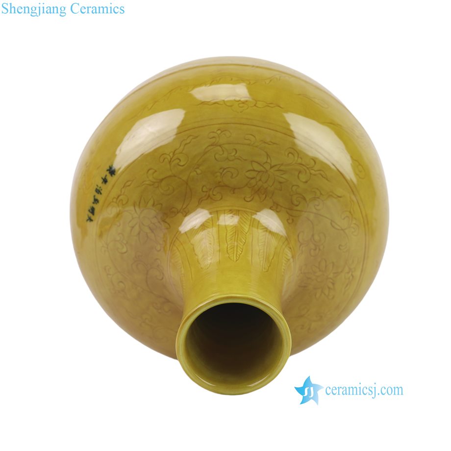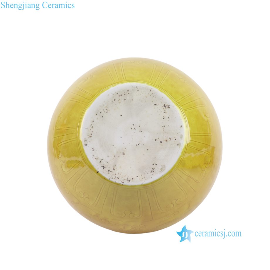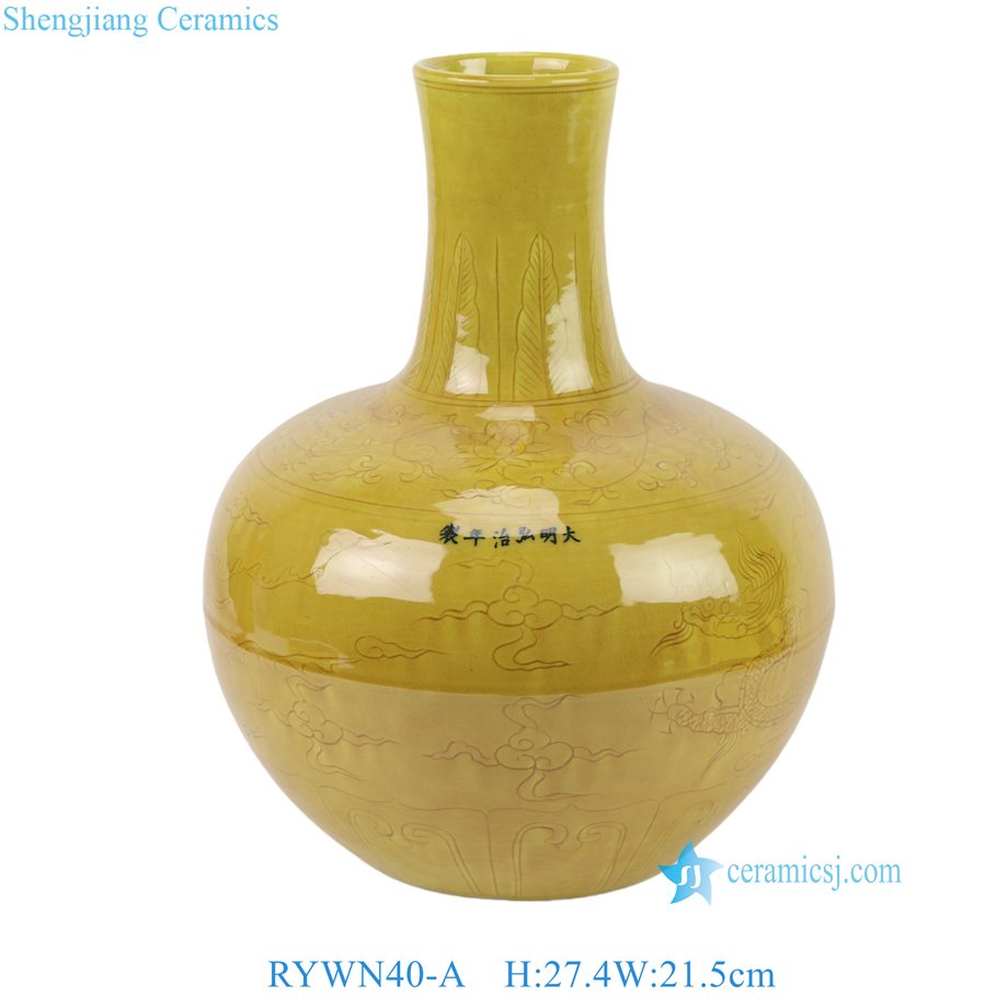 RYWN40-A Vintage Ming Dynasty Yellow Glaze Carved Dragon Pattern Celestial Globe Vase for Collections Home Decor