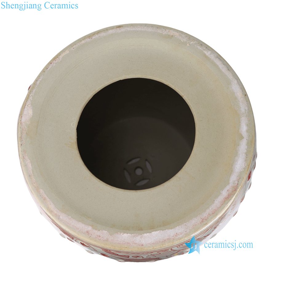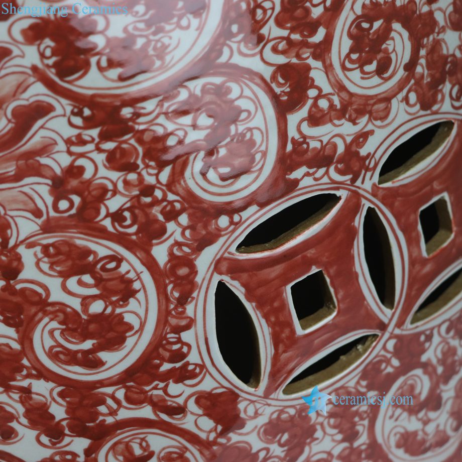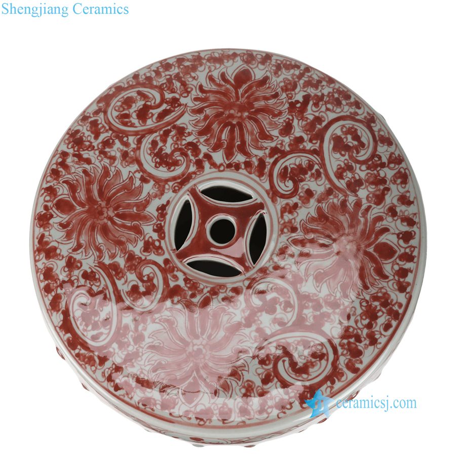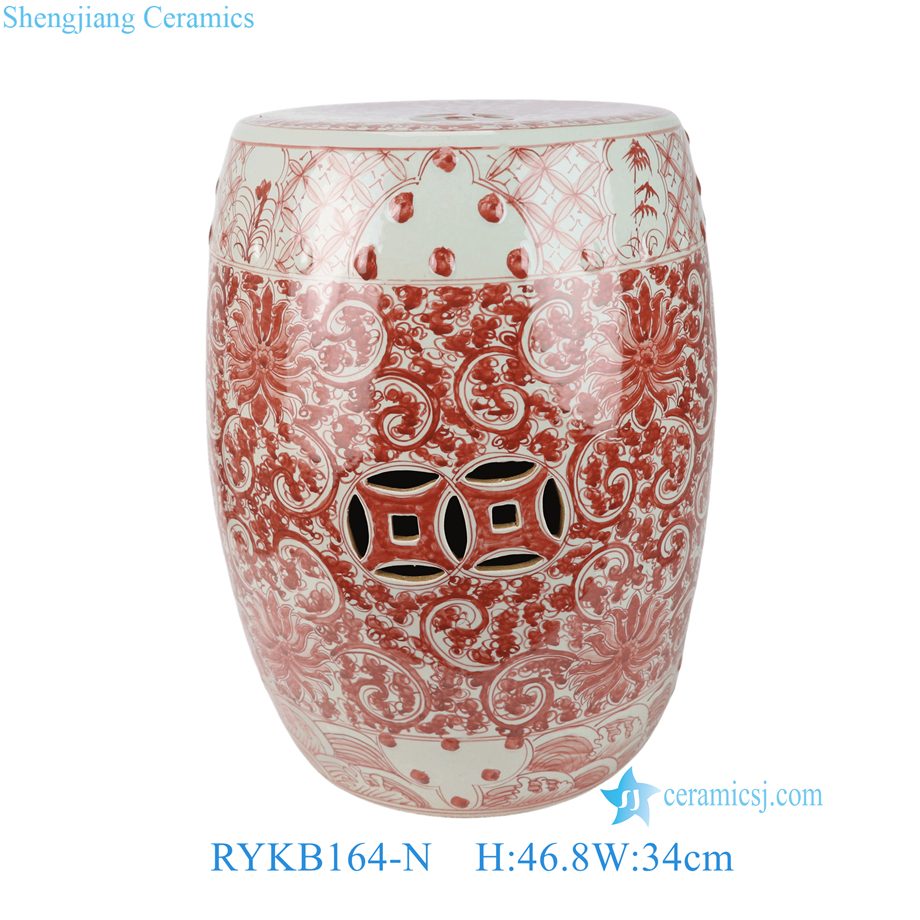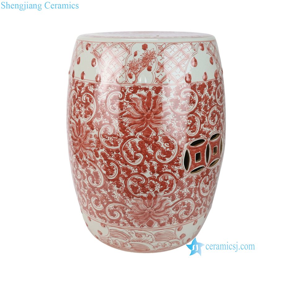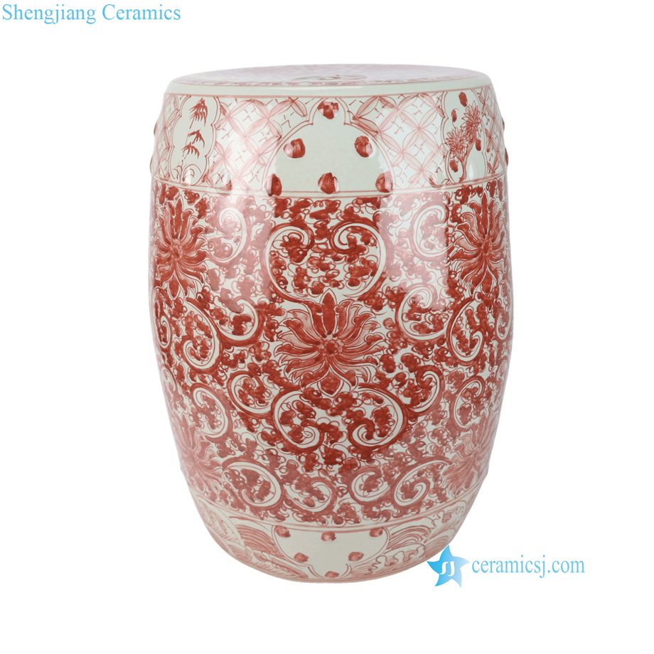 RYKB164-N Underglaze Copper-Red Intertwined Lotus Scrolls Pattern Porcelain Drum Stool |