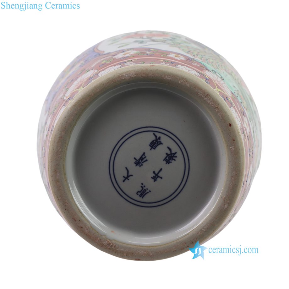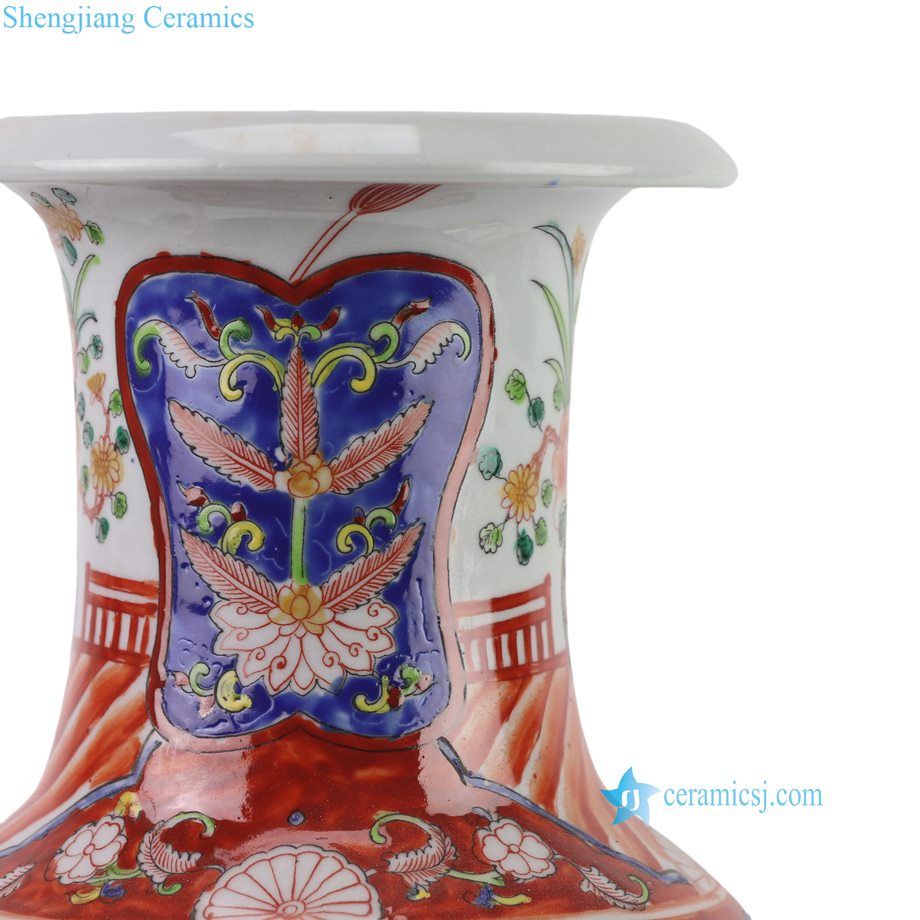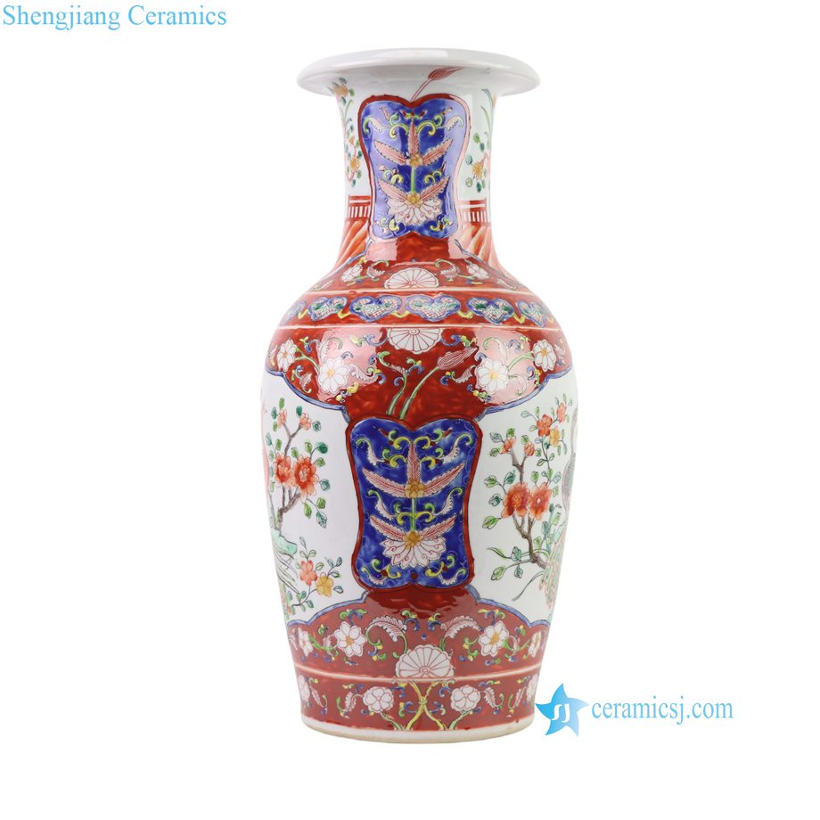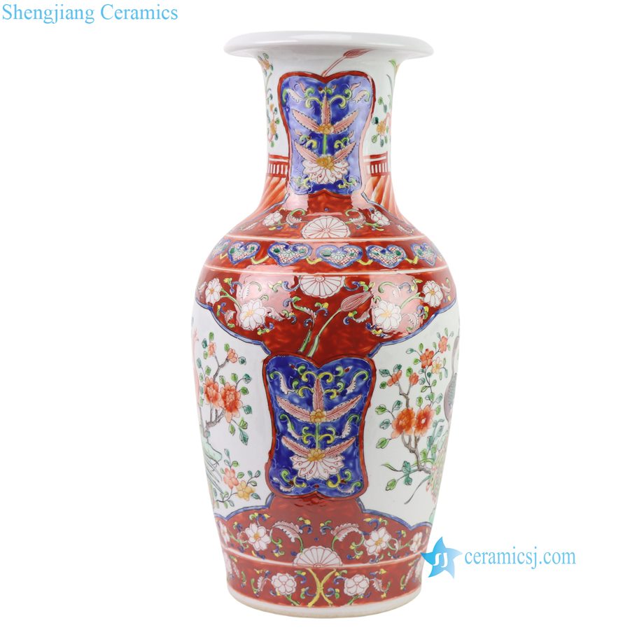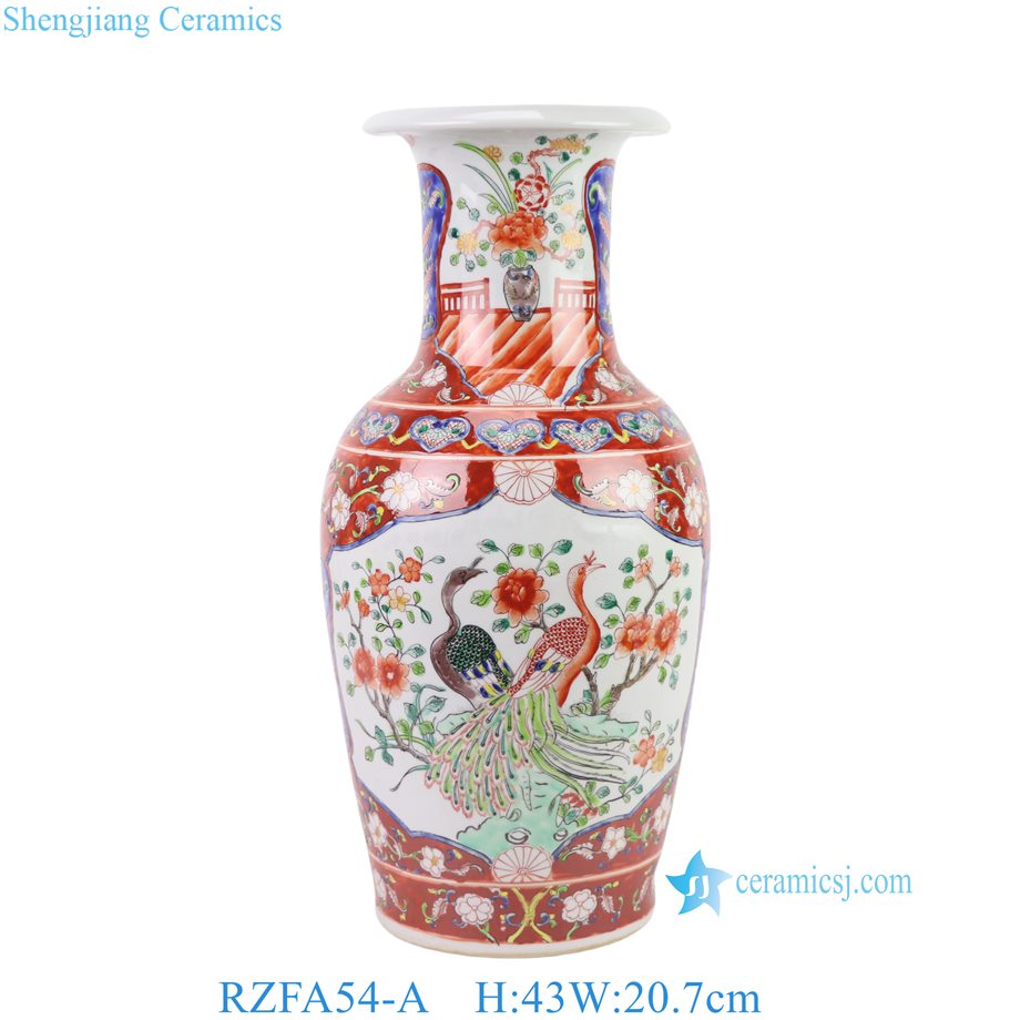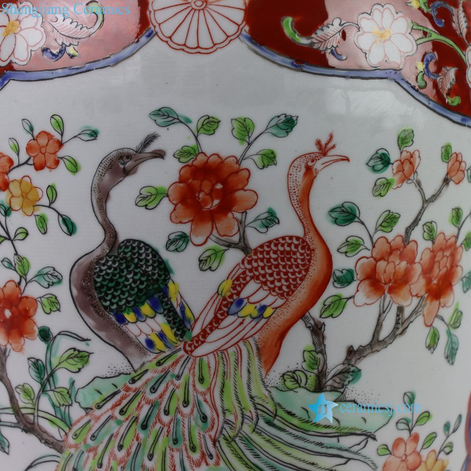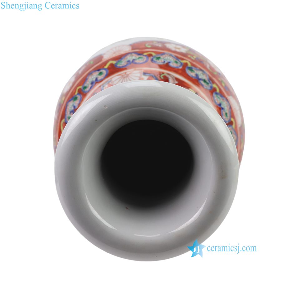 RZFA54-A Kangxi Period Famille Rose Porcelain Red-Glazed Base with Openwork Bird Flower and Phoenix Motifs Lotus Seed-Shaped Vase