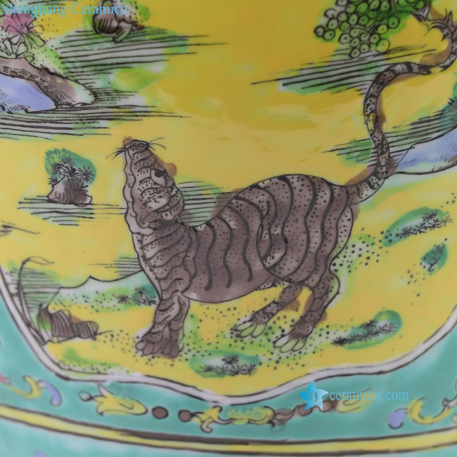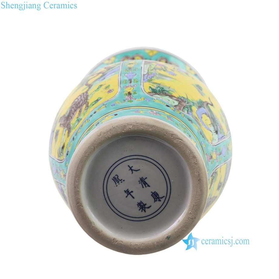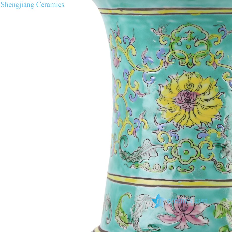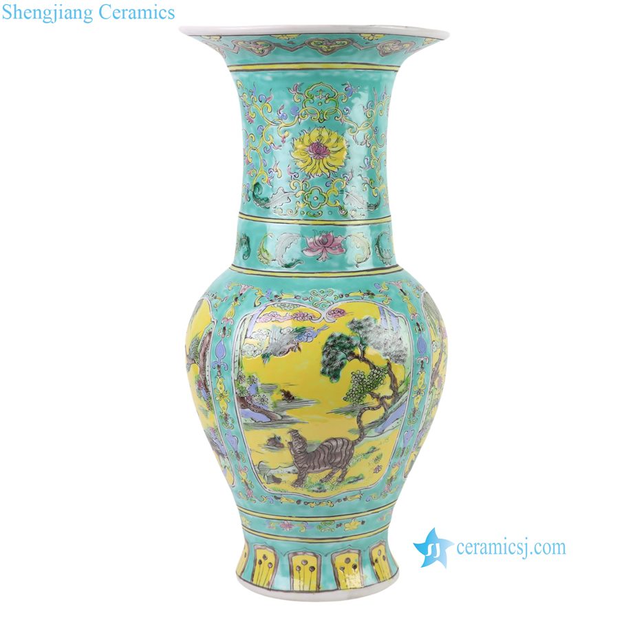 RZFA57-A Kangxi Period Turquoise Green Glazed Openwork Panels with Tiger and Crane Motifs Gu-Shaped Vase