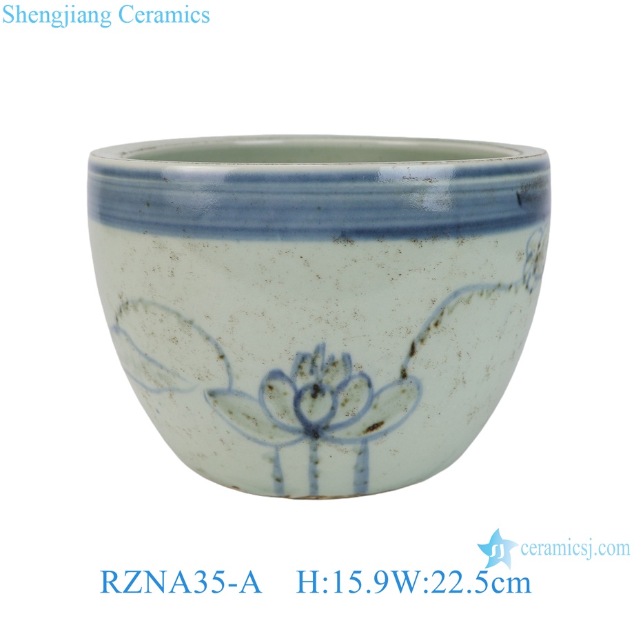 RZNA35-A Handcrafted Vintage Design Chinese Porcelain Flowerpots Blue and White Underglaze Red Lotus Planter |