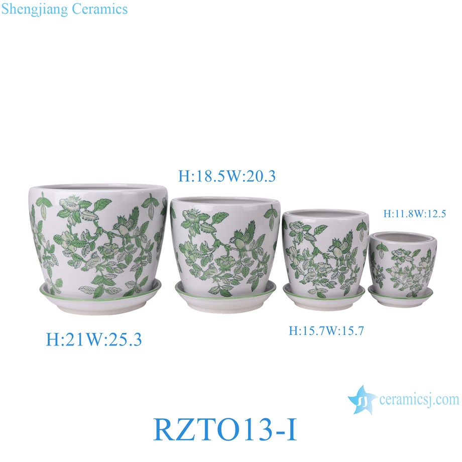 RZTO13-I Wholesale Green and White Big Smallers Porcelain Four-piece Set Flowerpots Planter |