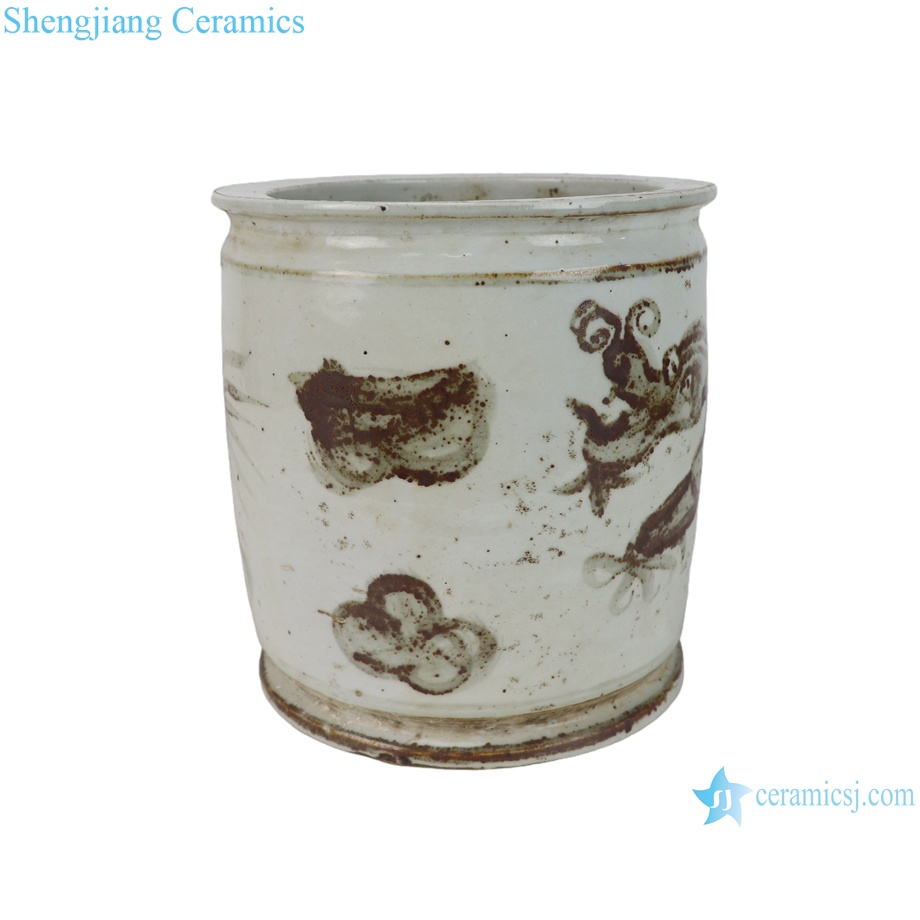 RZNA40-A-B Jingdezhen Antique Old Looking Underglaze Copper-red Dragon Motif Porcelain Flower Pots Censer |
