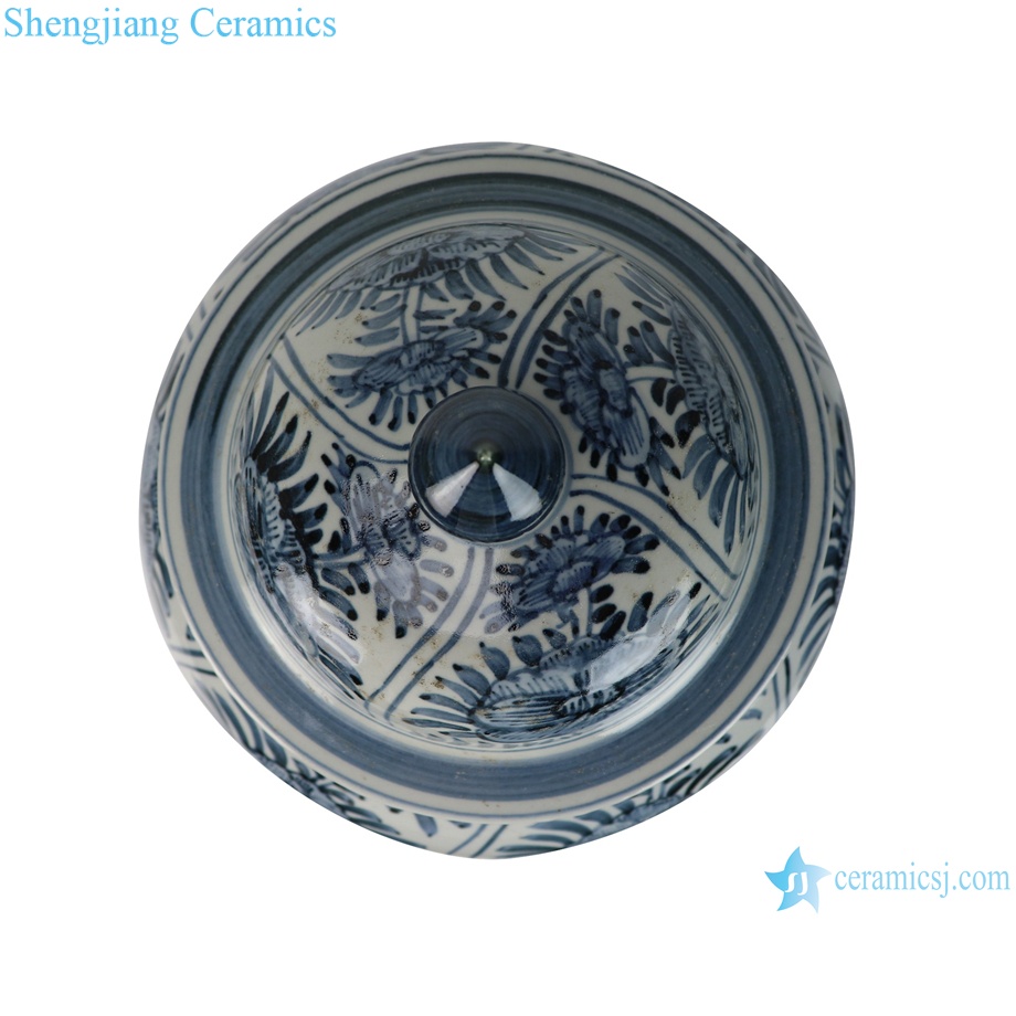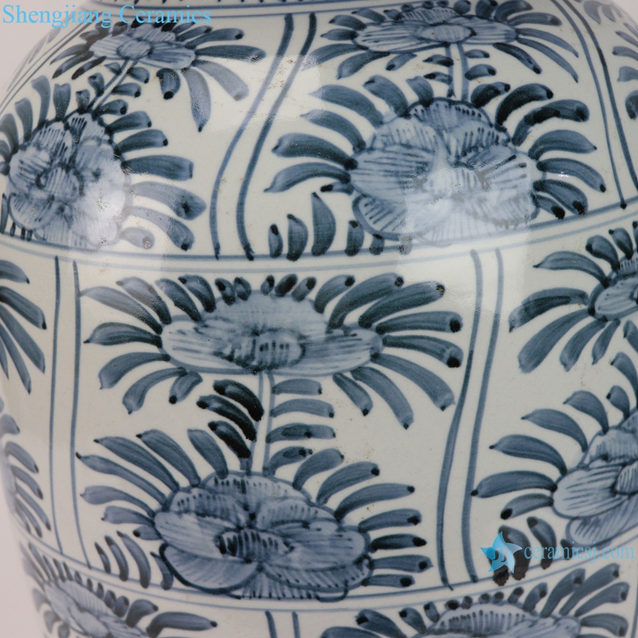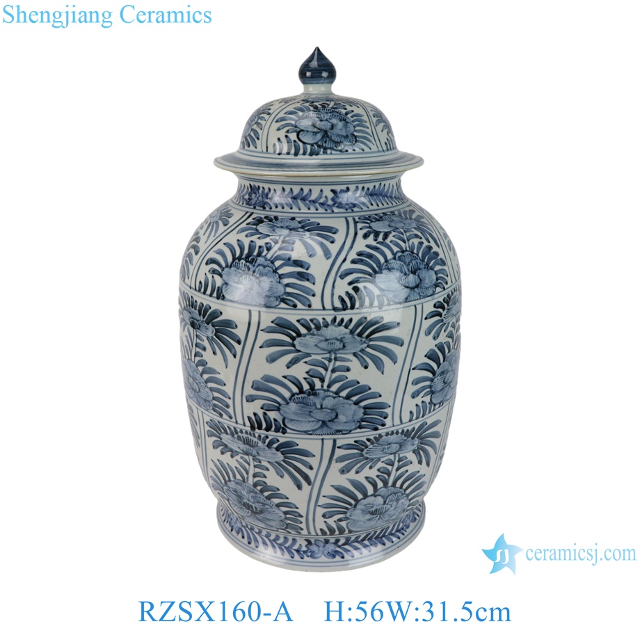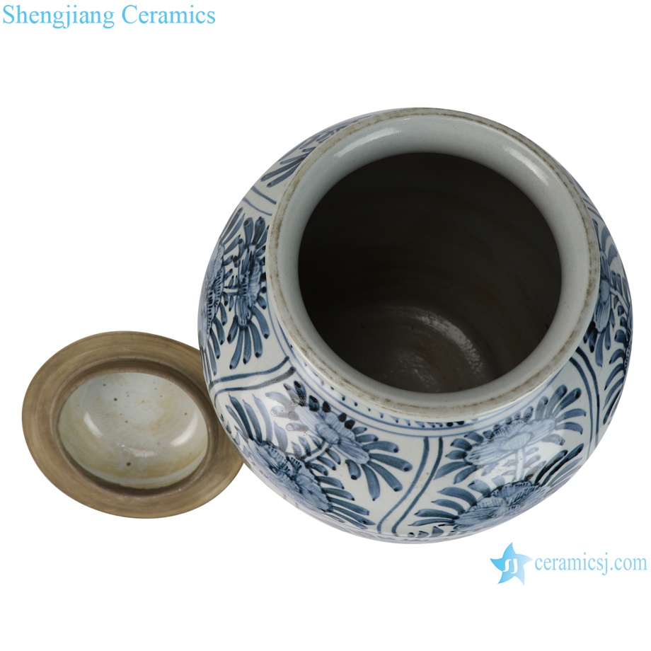 Jingdezhen Antique Hand Painted Blue and White Folk Peony Motif Porcelain Temple Jar for Home Decor Hotel Living Room |