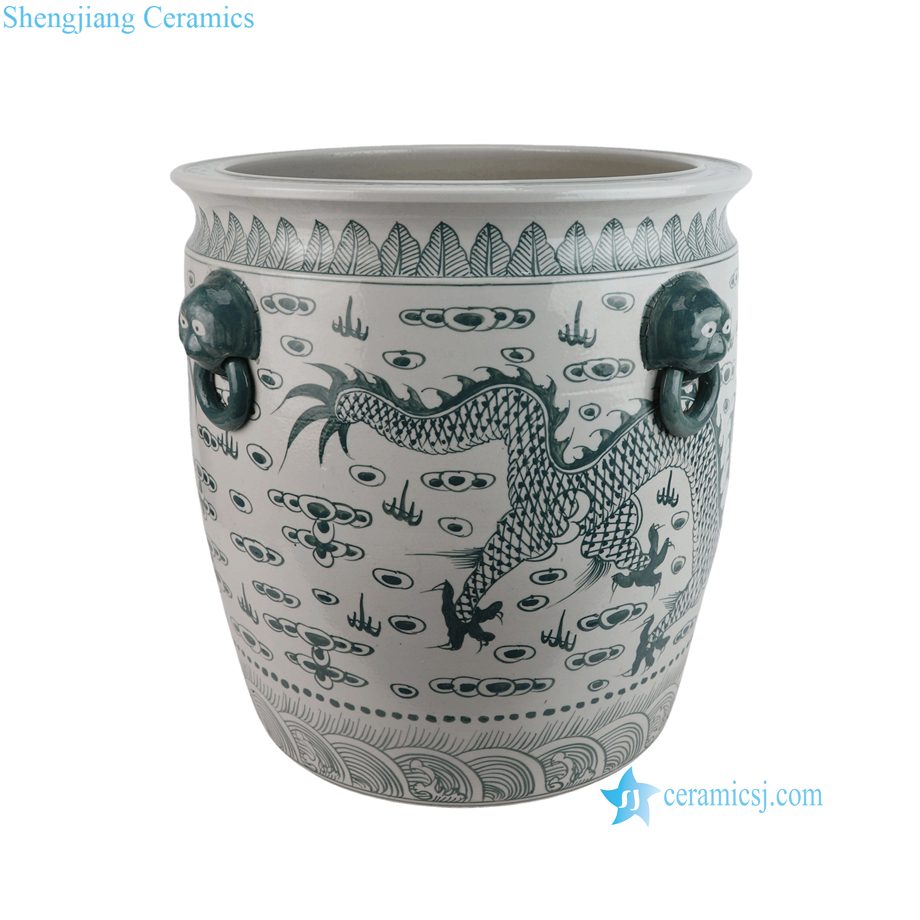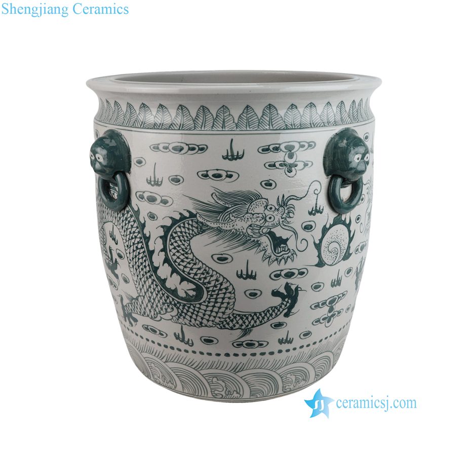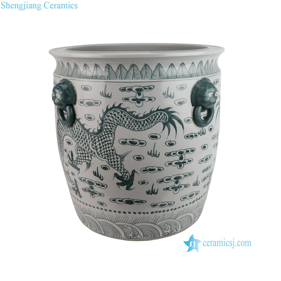 RZFH02-J Traditional Oriental Floor Ceramic Planter Green Dragon Pattern Indoor Outdoor Decoration Wholesale Flower Bowl |