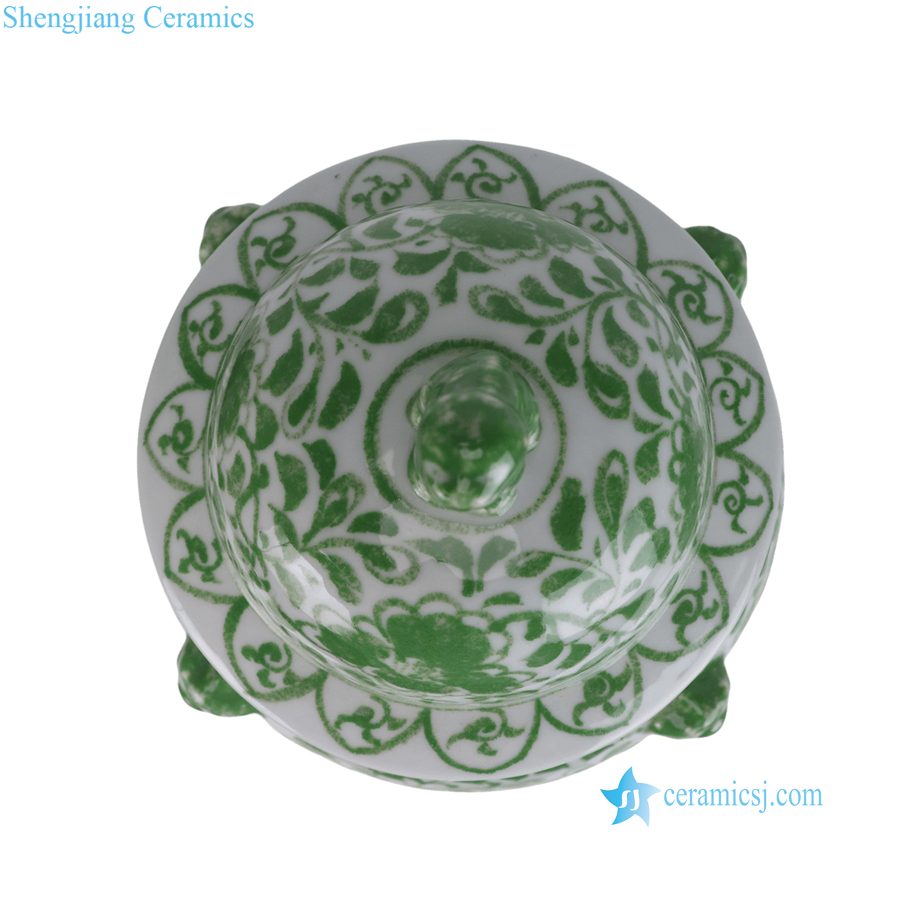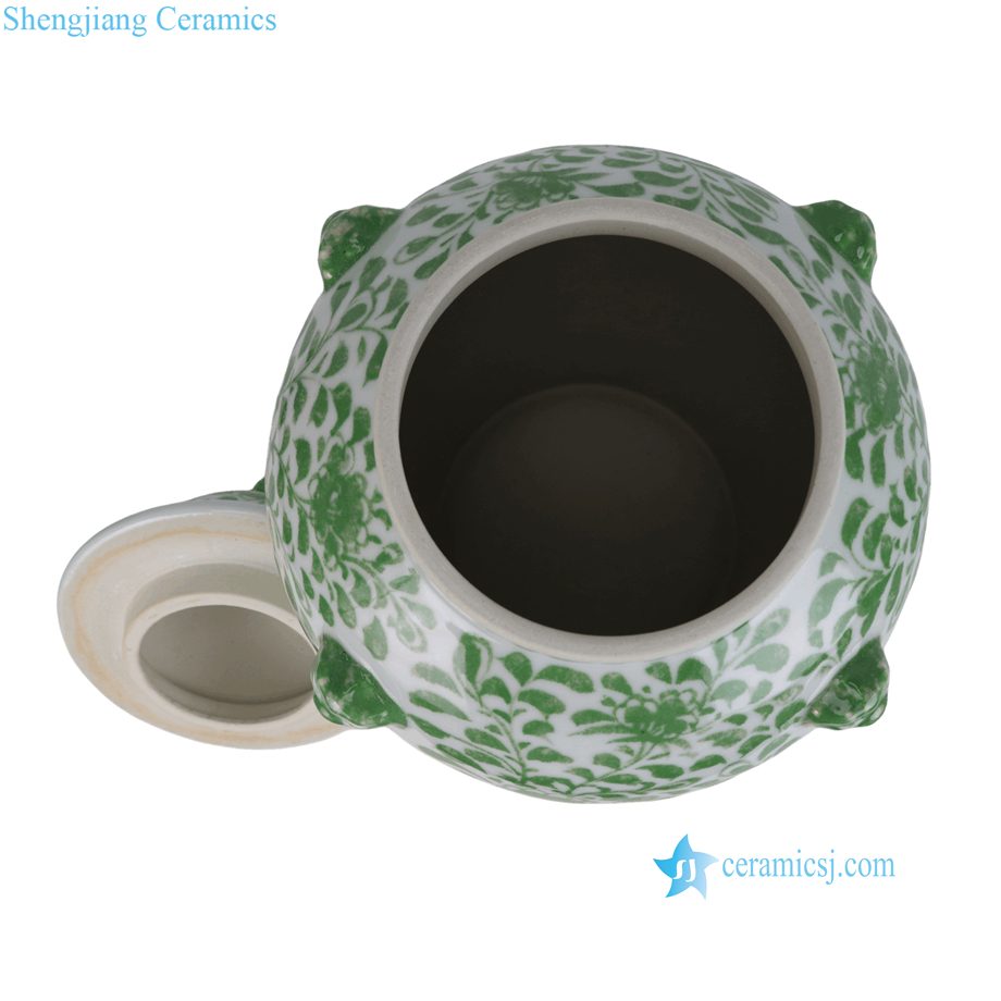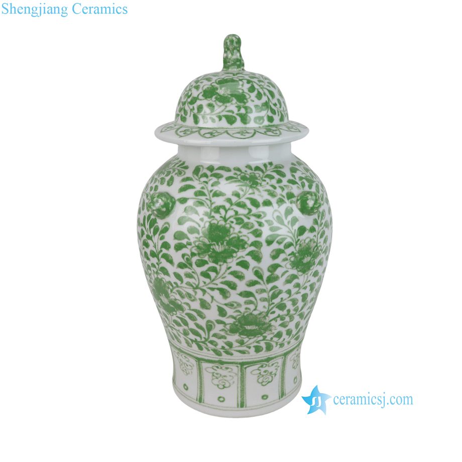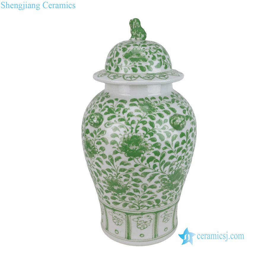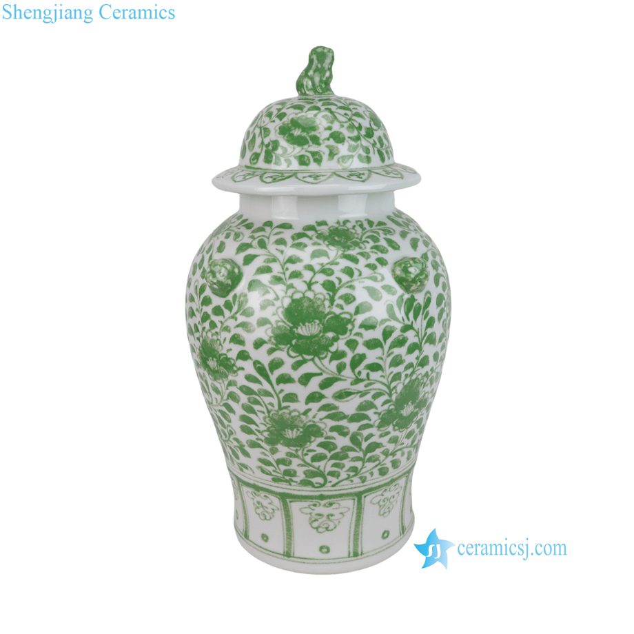 RZKR69-B Luxury Oriental Green Ginger Jar Handpainted Peony Pattern Storage Jar with Lid