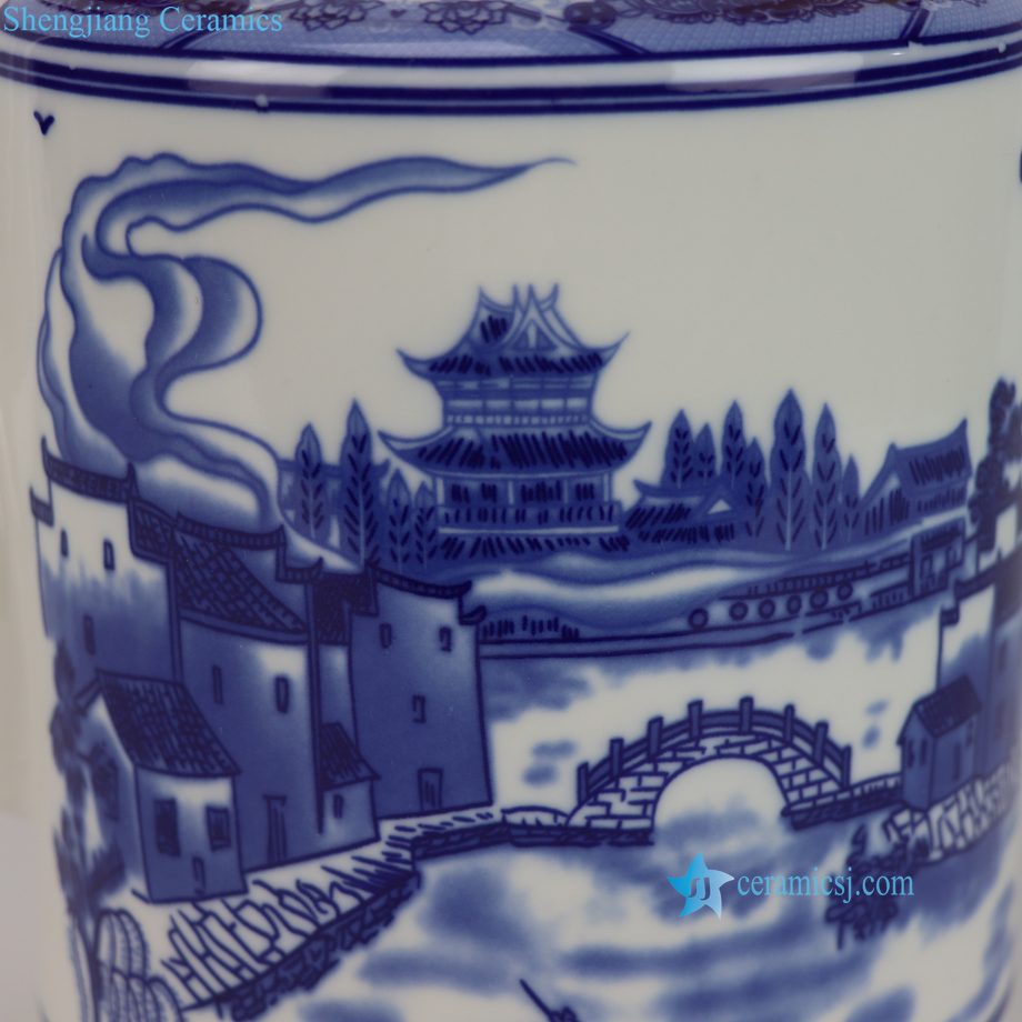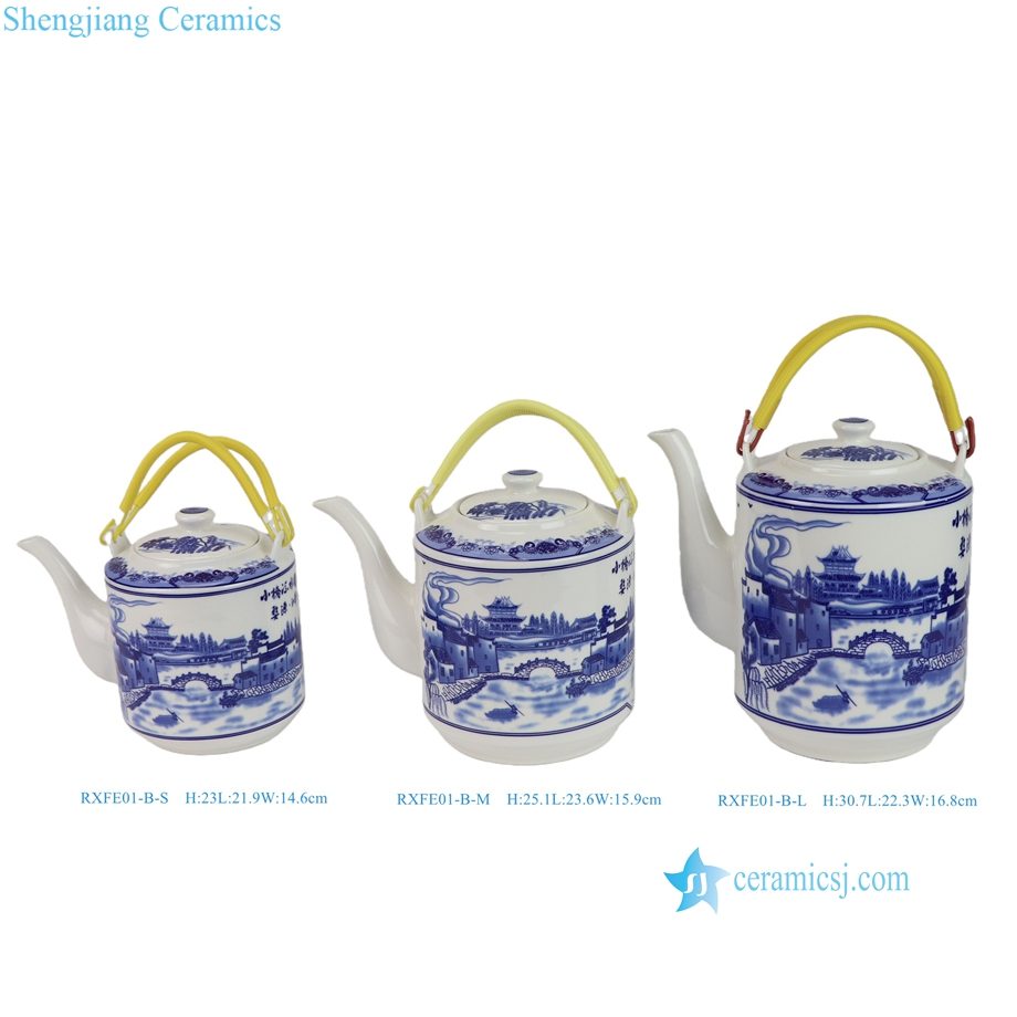 RXFE01-B-L-M-S Factory Price Blue and White Landscape Pattern 3 Sizes Porcelain Teaware From Jingdezhen