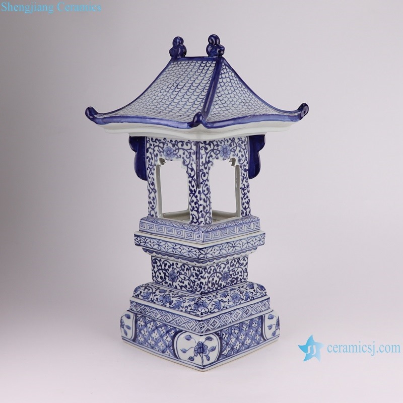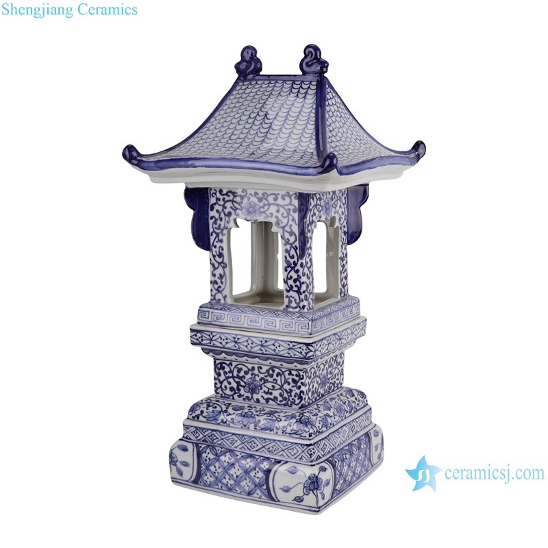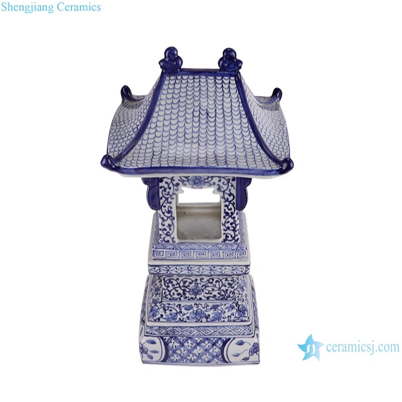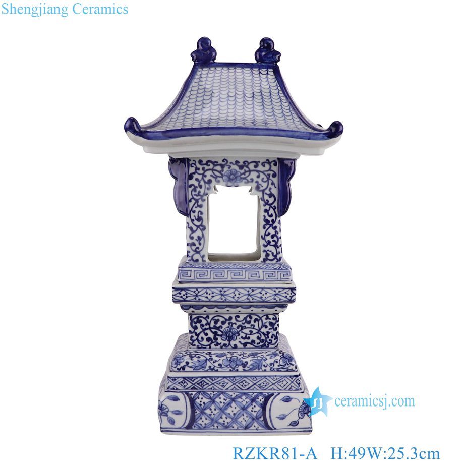 RZKR81-A Wholesale Jingdezhen Blue and White Porcelain Pagoda Sculpture Scrolling Lotus Pattern Temple Tower Ornament