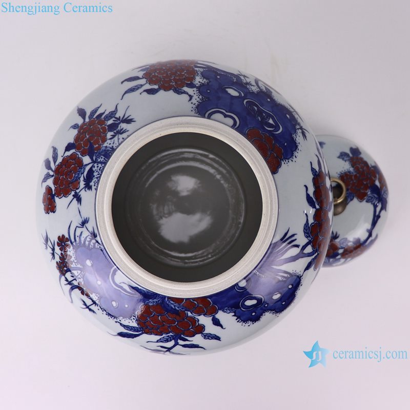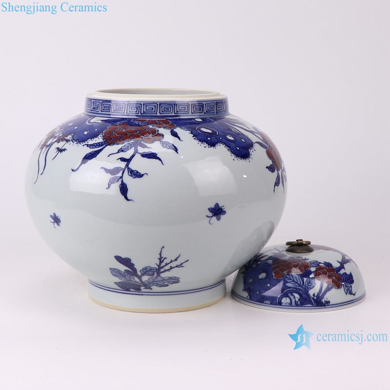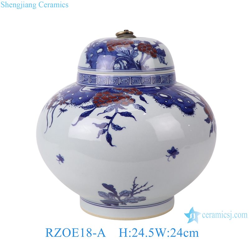 RZOE18-A Elegant Chinese Blue and Red Underglaze Porcelain Storage Jar Decor