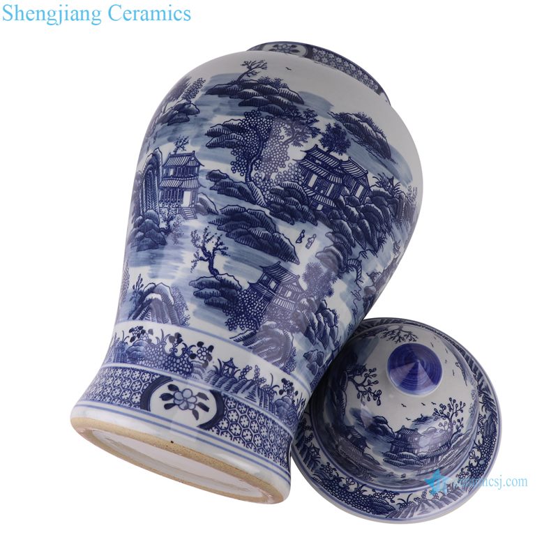 RZSi65-A Jingdezhen Blue and White Landscape Pattern Porcelain Ginger Jar Ceramic Lidded Pot Urns