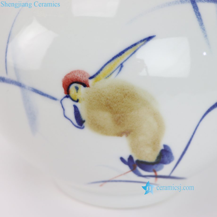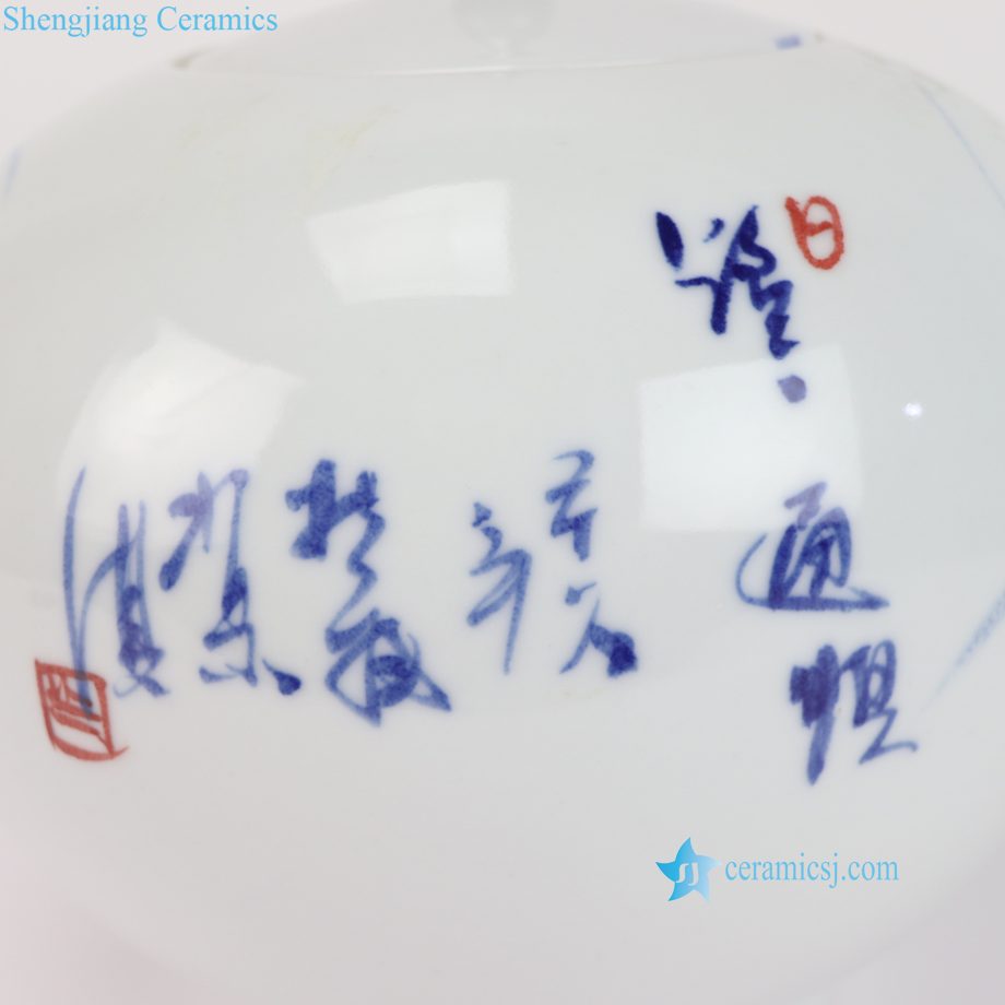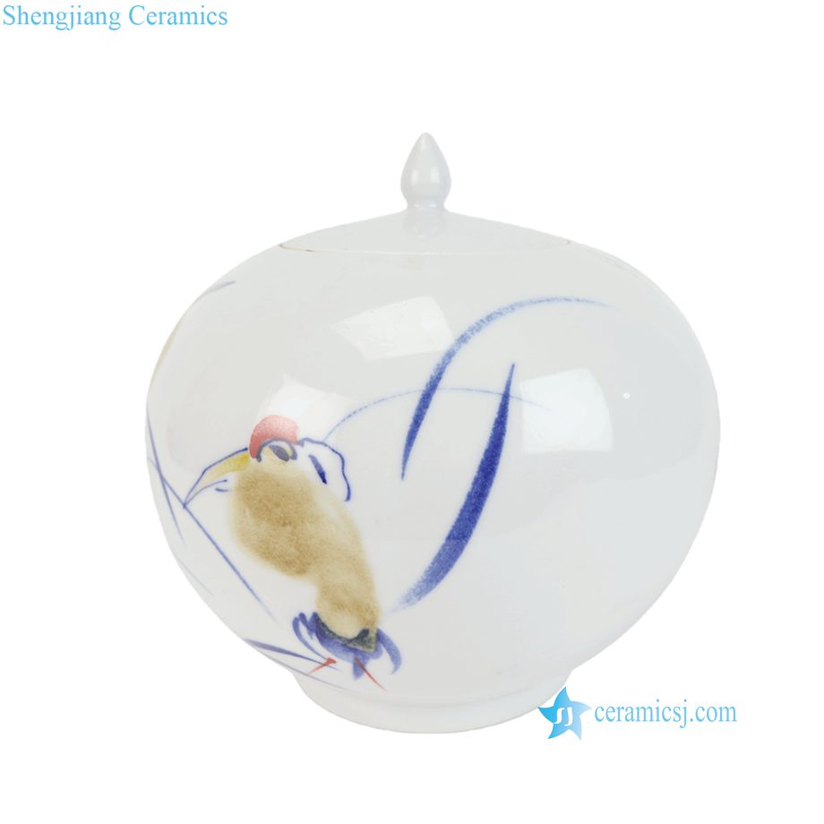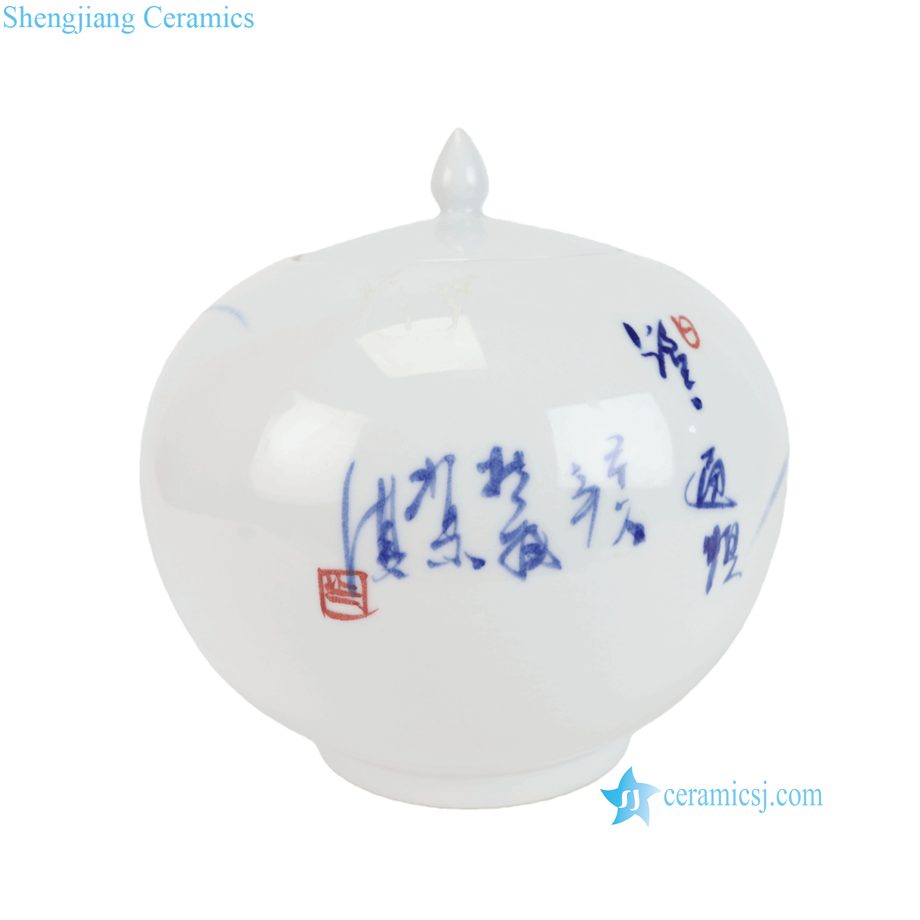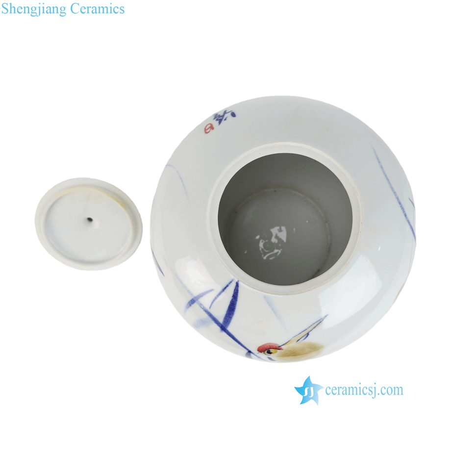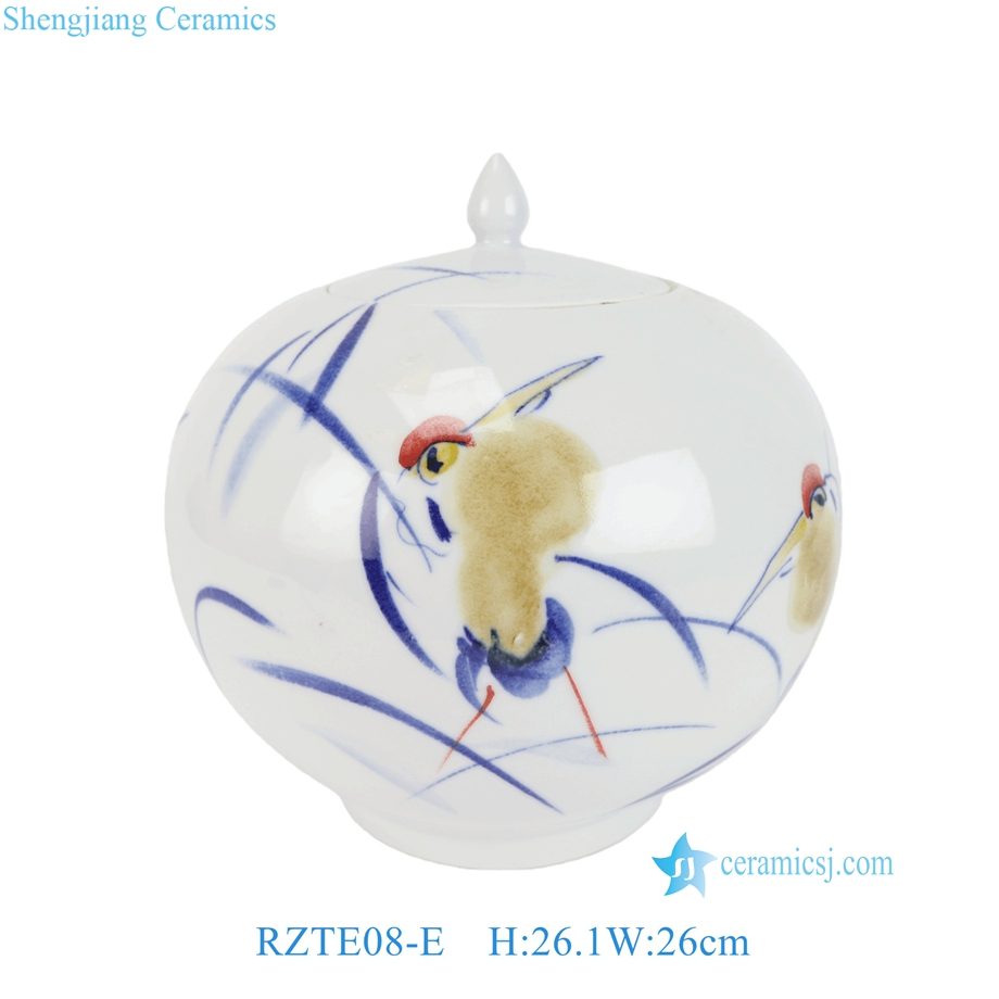 RZTE08-E Hand Painted Doucai Crane and Poem Pattern Watermelon Shape Decorative Ceramic Jar for Home Decoration