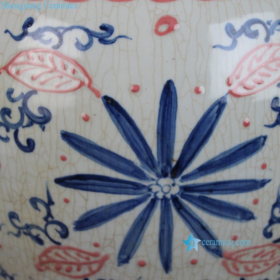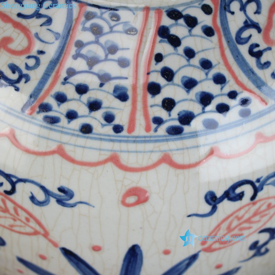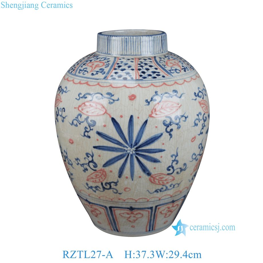 RZTL27-A Jingdezhen Hand Painted Blue and Red Floral Pattern Decorative Ceramic Vase for Home Decor Sidetable Collections Living Room