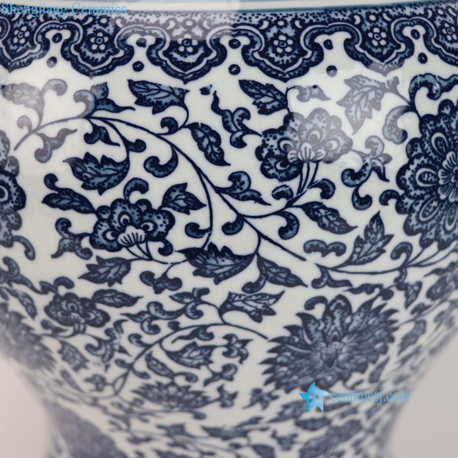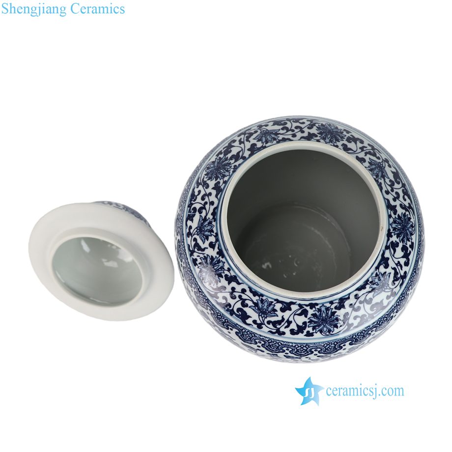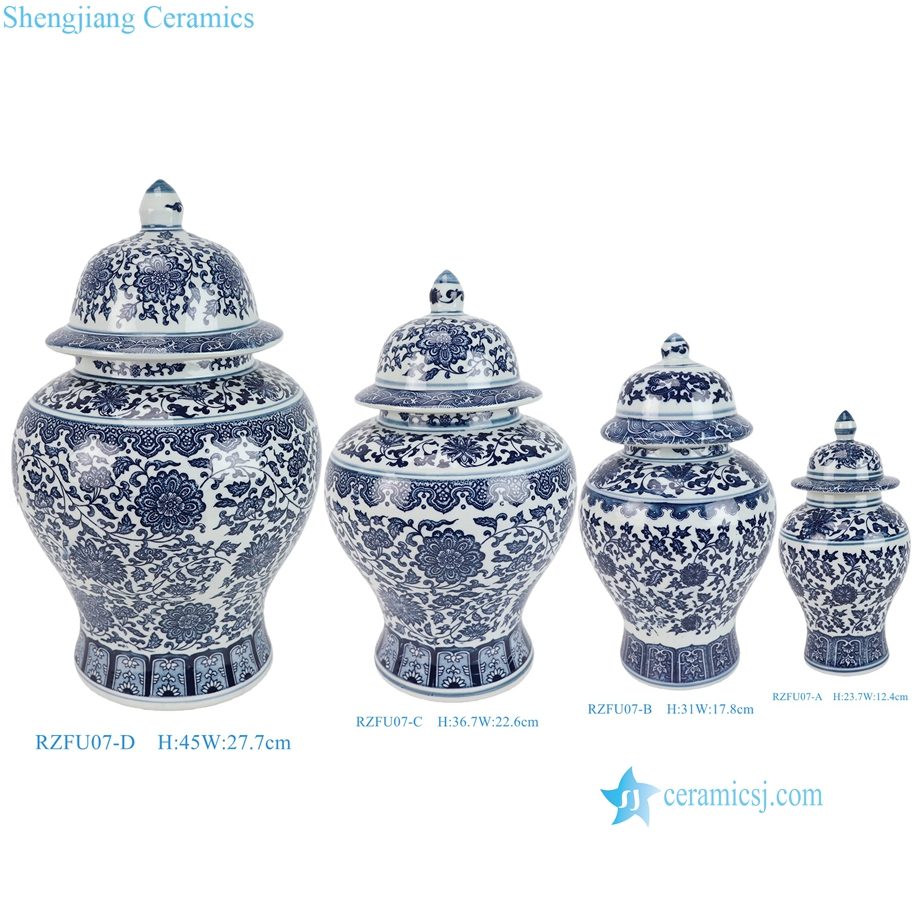 Wholesale Blue and White Ceramic Flower Pattern Temple Jar for Home Decoration