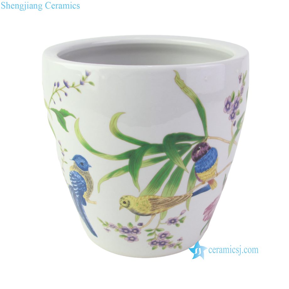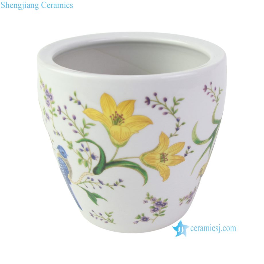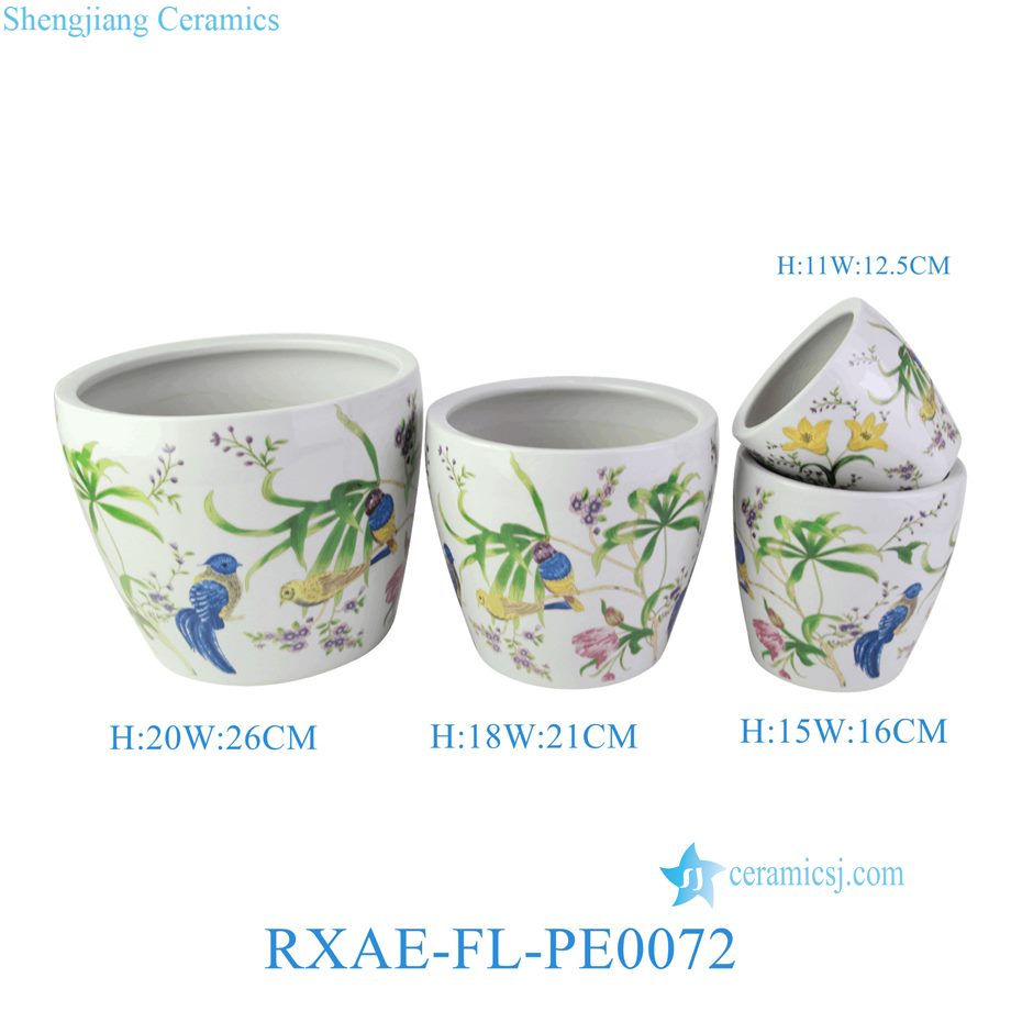 RXAE-FL-PE0072 Wholesale Multicolor Floral Bird Motif Ceramic Planter Set