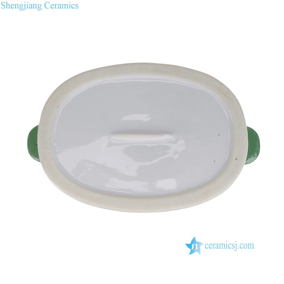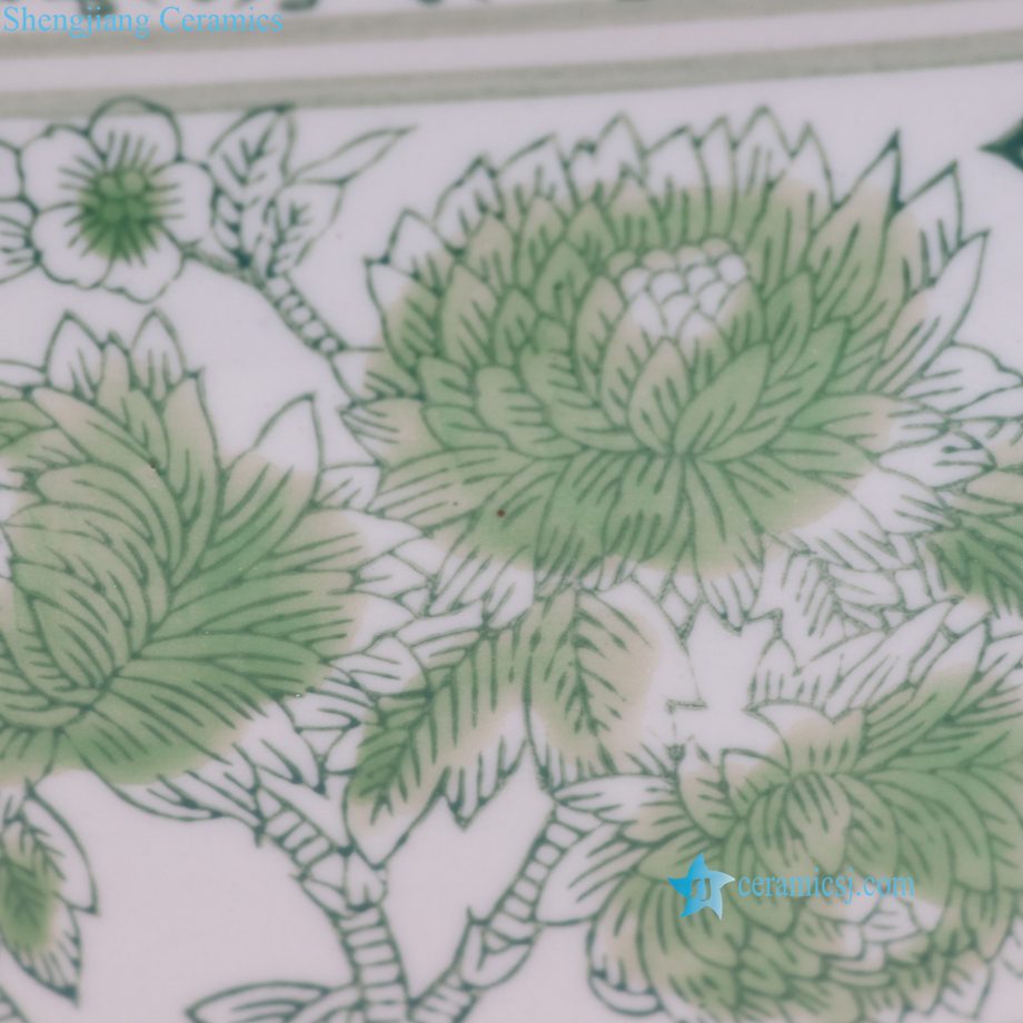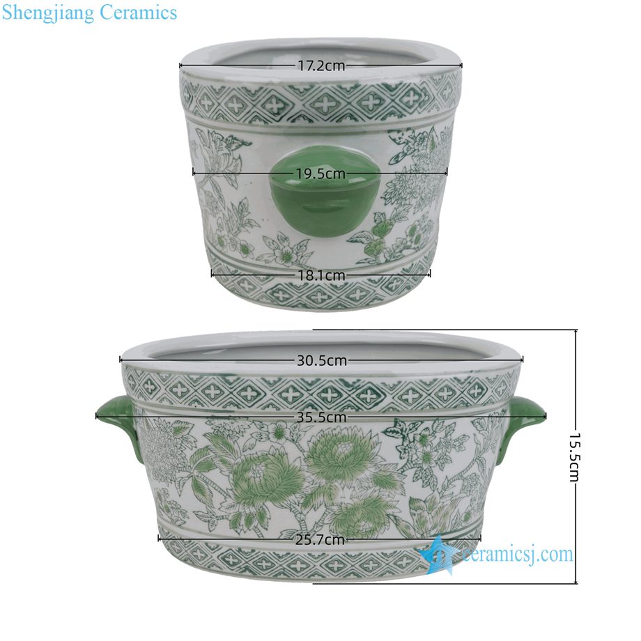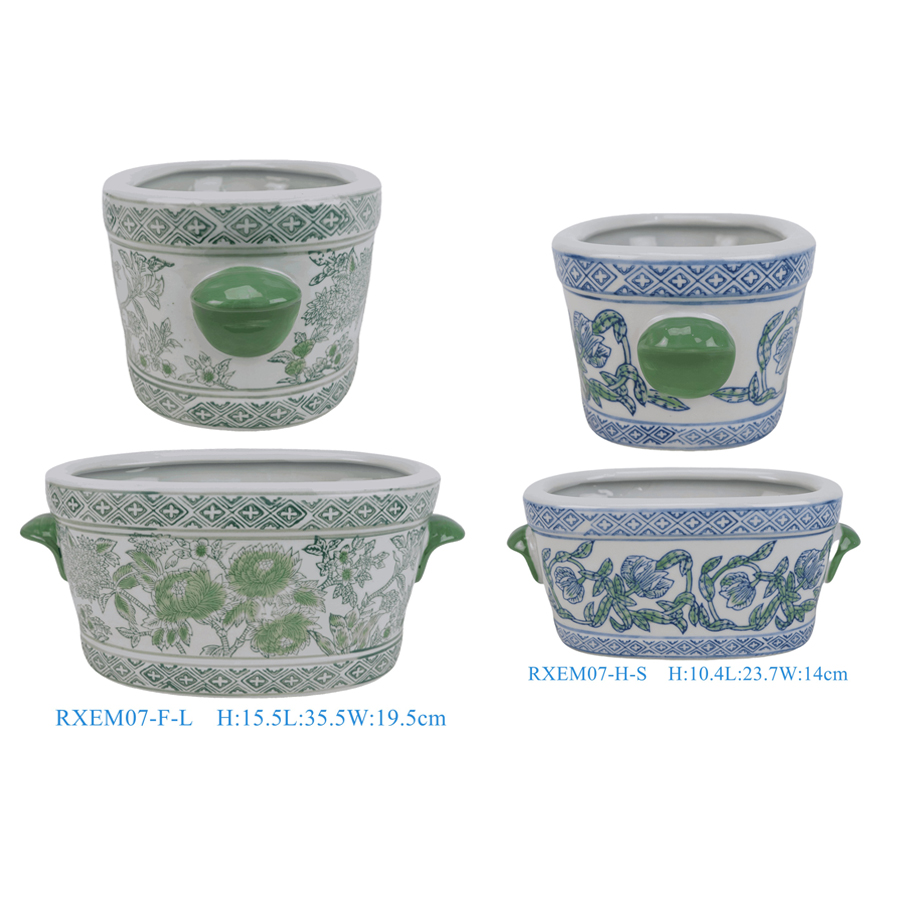 Item No. | RXEM07-F-L-H-S Wholesale Afforable Green and White Floral Motif Ceramic Oval Flower Pots With Handles |