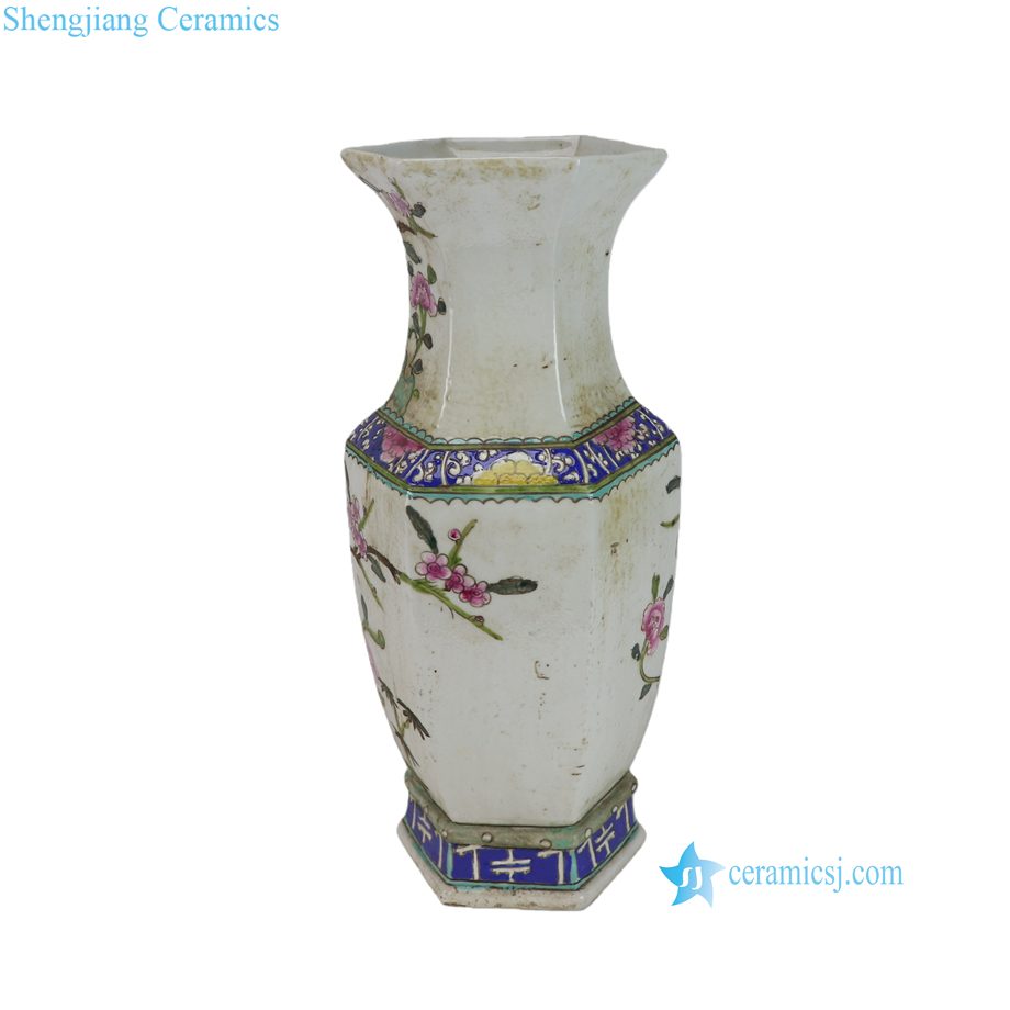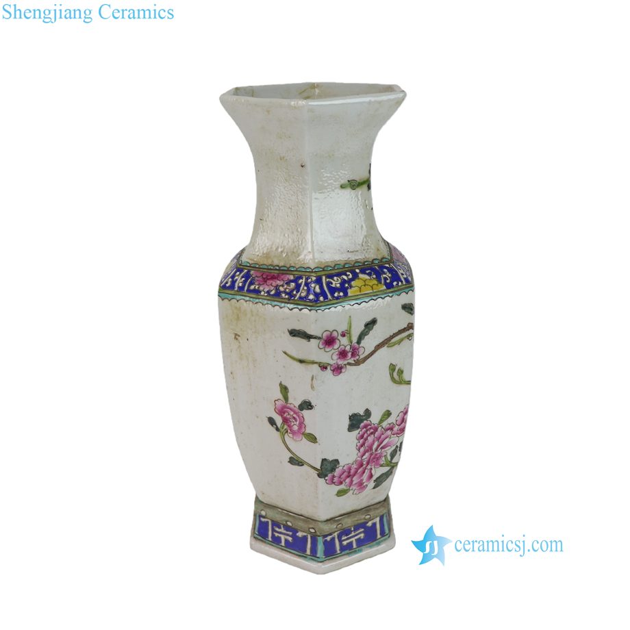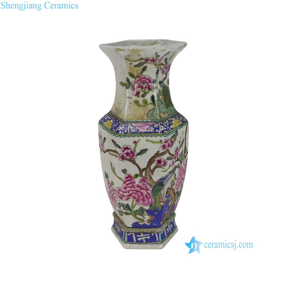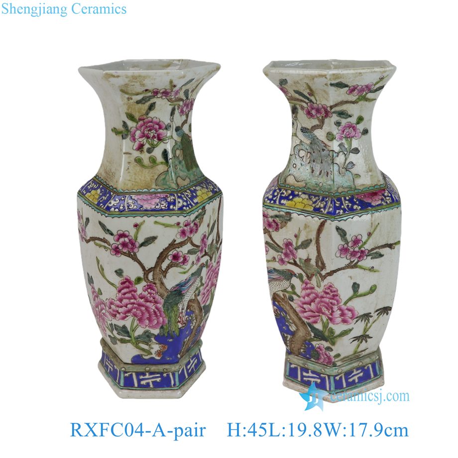 RXFC04-A-pair A PAIR OF FAMILLE ROSE flower and bird hexagonal bottles Ceramic Decorative Vase