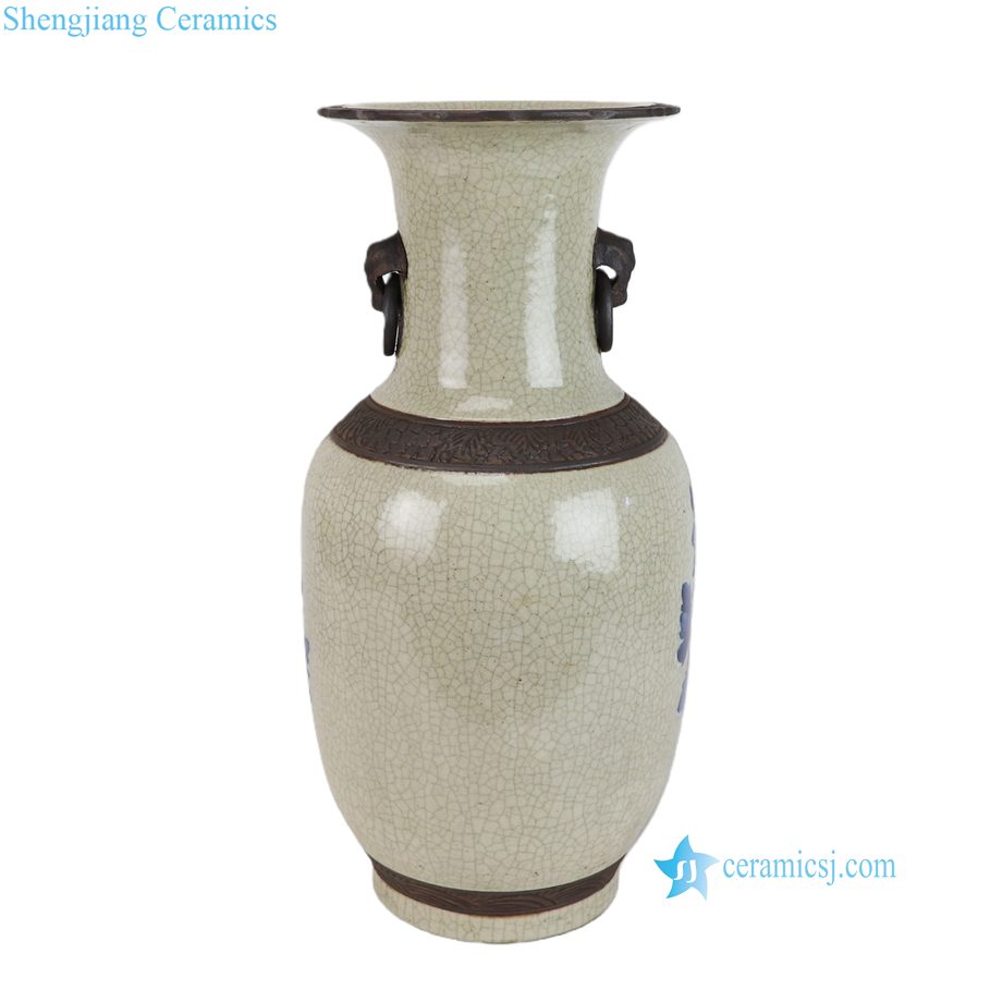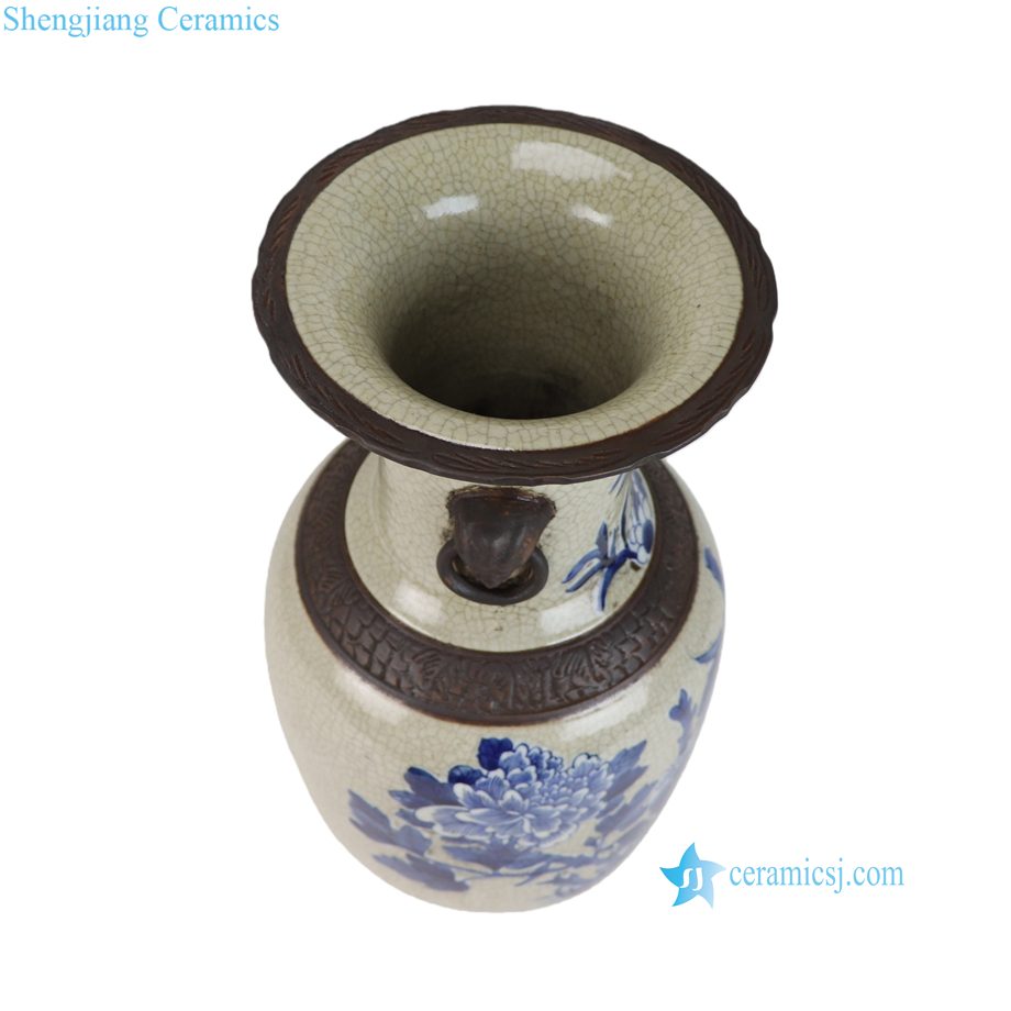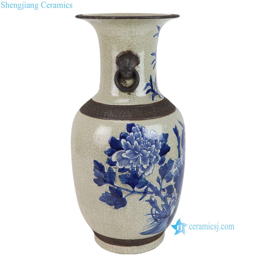 RXFC05-A Jingdezhen Vintage Chinese Crackle Ceramic Blue White Flower Birds Vase |