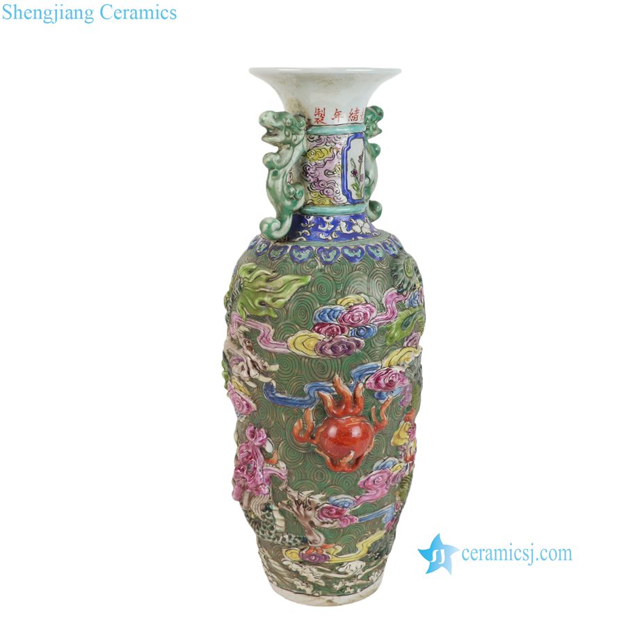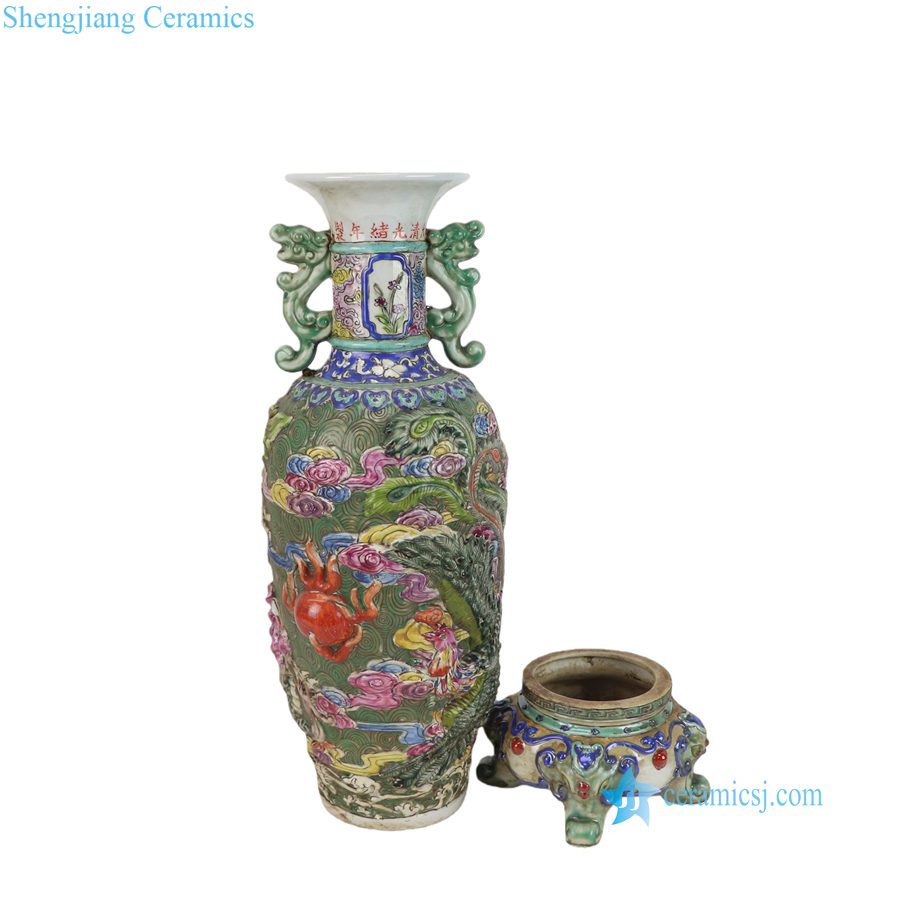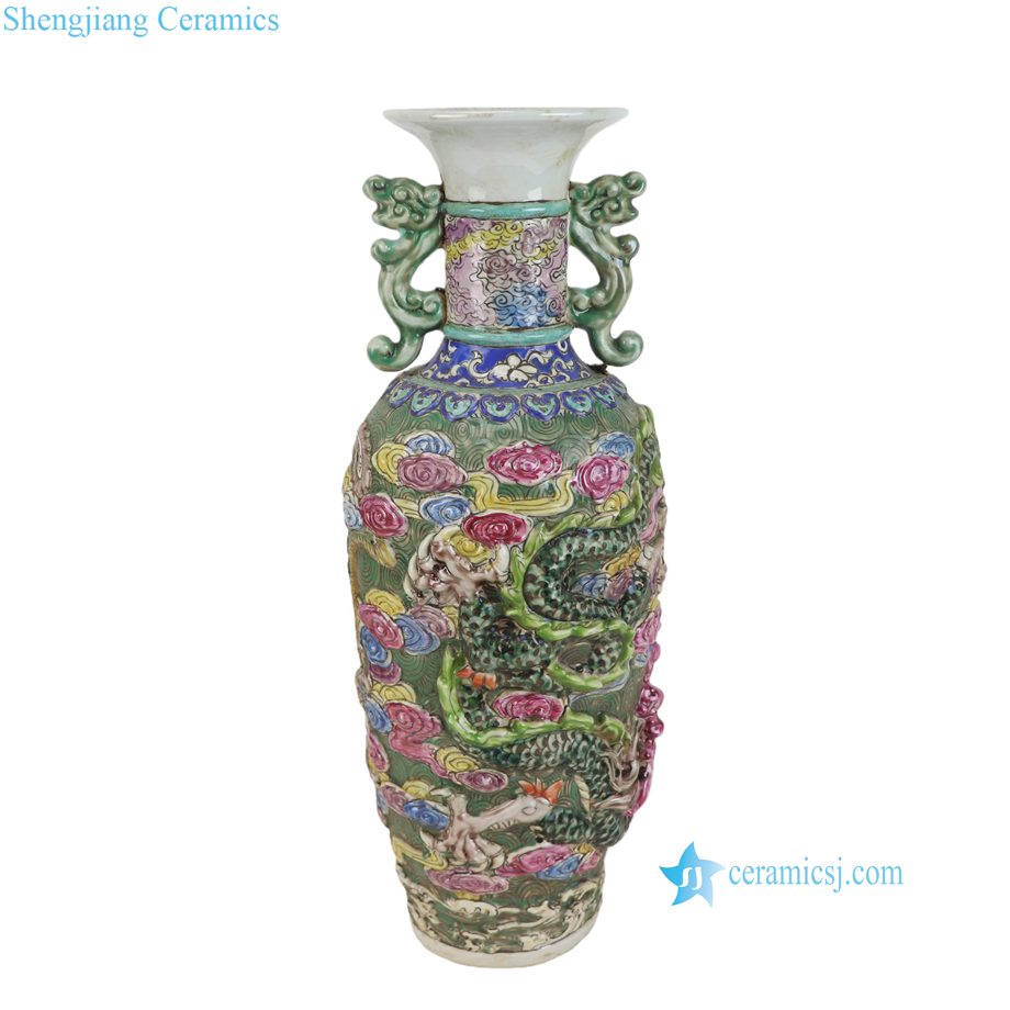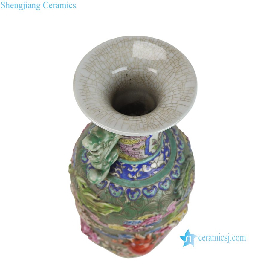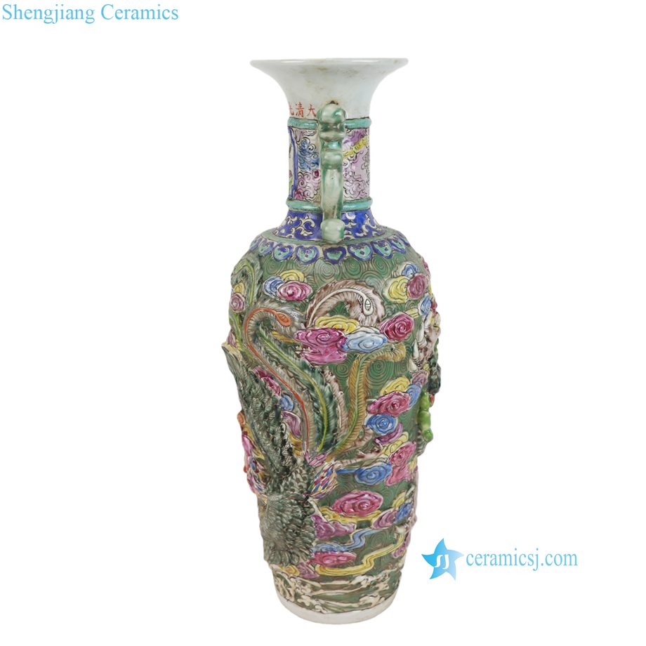 RXFC06-A Large Rose Medallion Fluted Dragon and Phoenix Carved Pattern Chinese Porcelain Vase with base