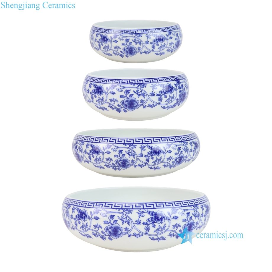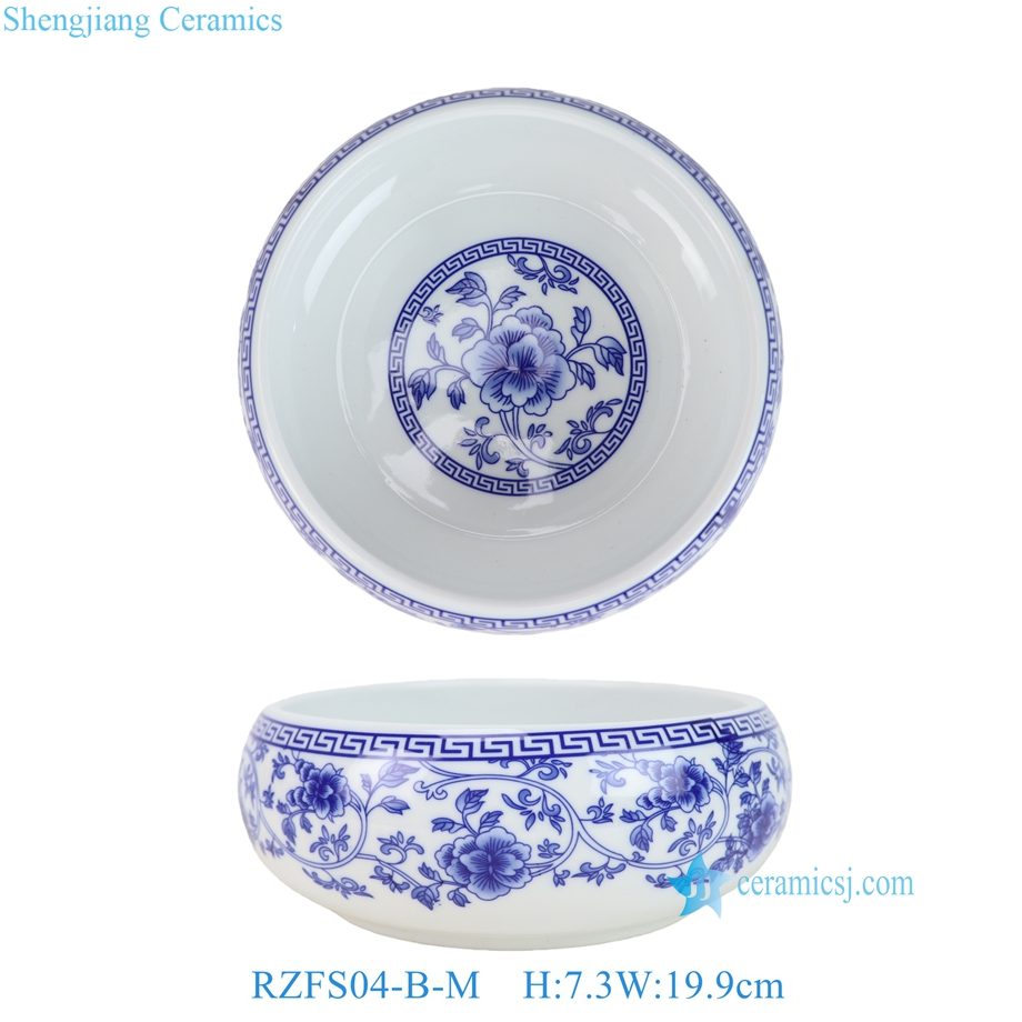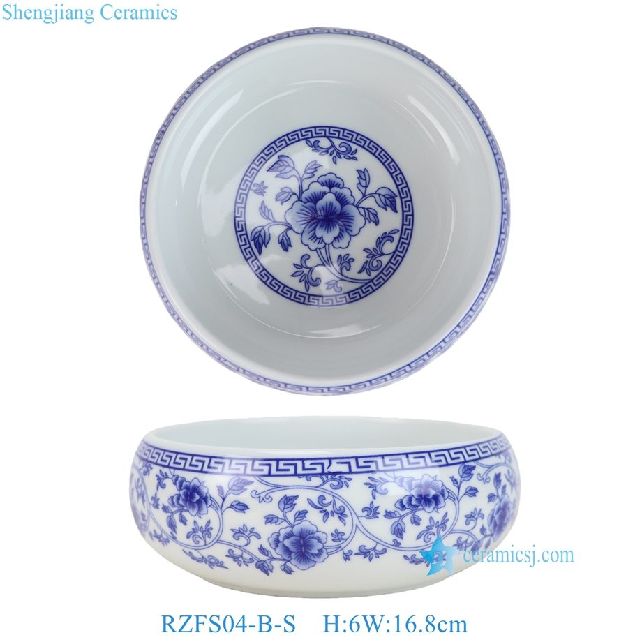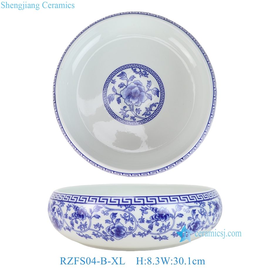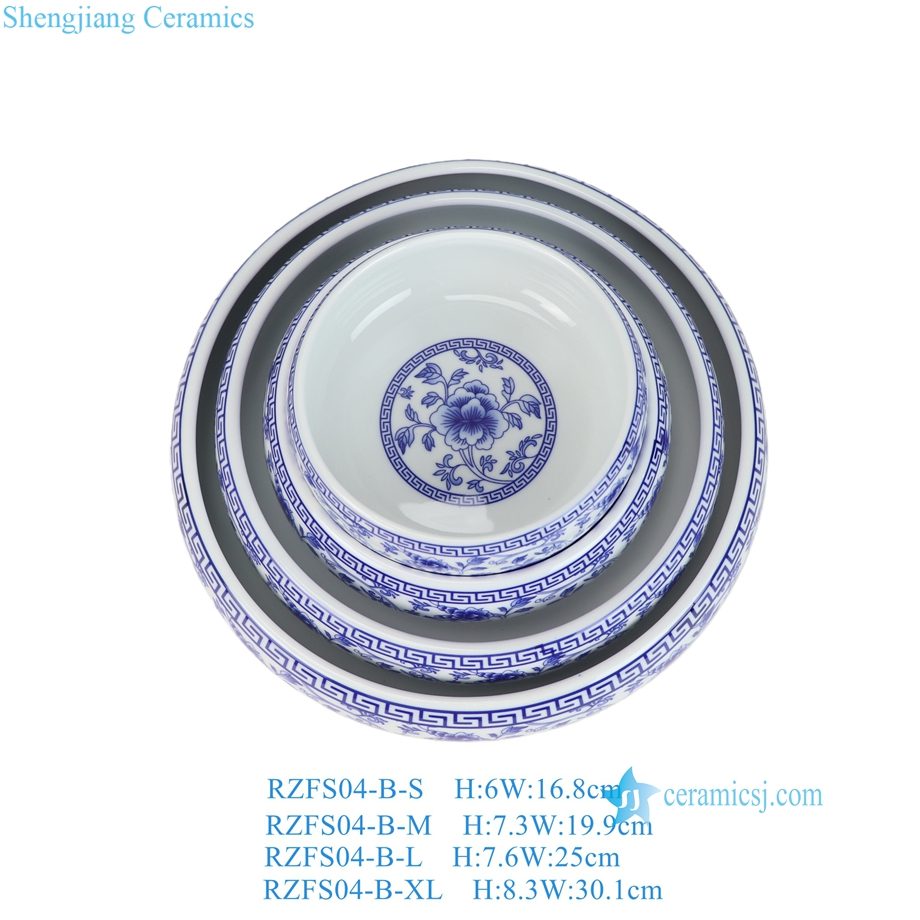 RZFS04-A-XL-L-M-S Vintage Blue and White Twisted Flower Pattern Ceramic Asian Bowls Chinese Rice Candy Fish Bowls