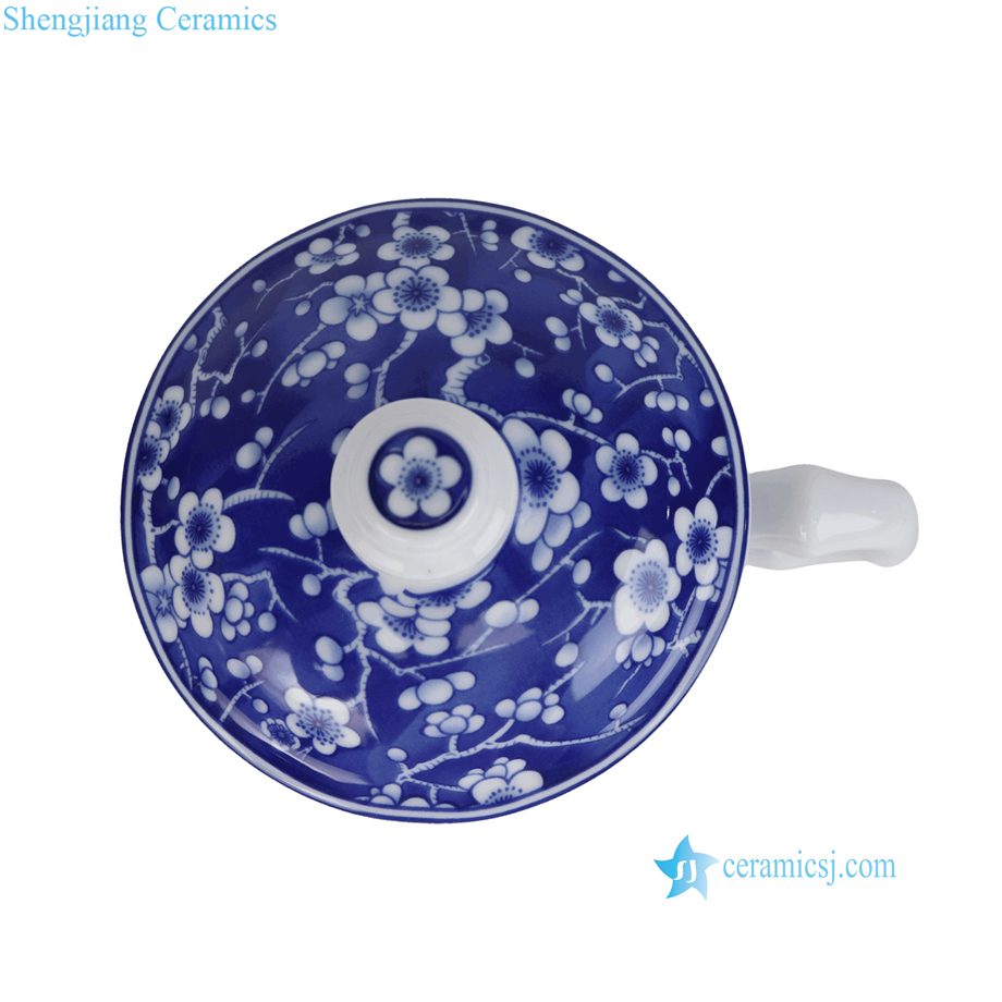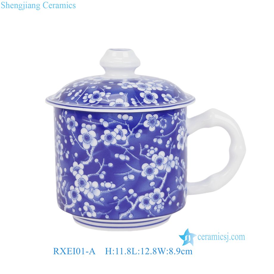 RXEI01-A Jingdezhen Blue and White Ice Plum Pattern Ceramic Tea Cup With Lid